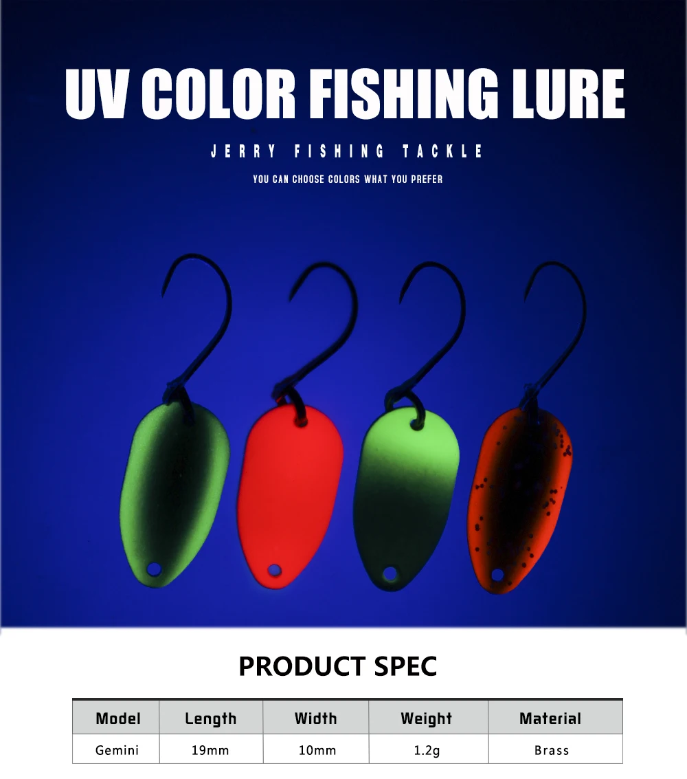 Jerry Gemini 1pc Spinning Fishing Micro Spoons Area Trout Wobble UV Colours Metal Lures Glitters Bait Wholesale