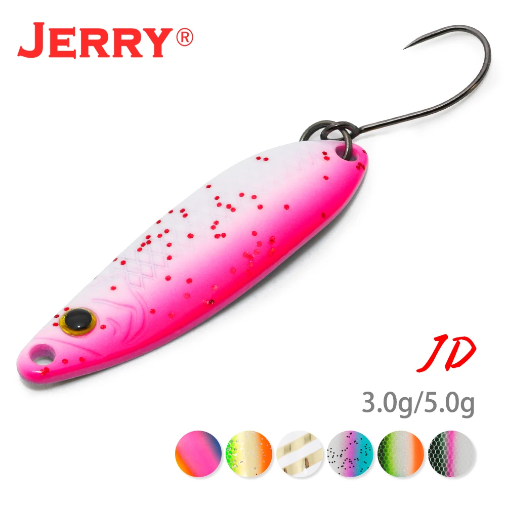 Jerry JD Area Trucha Latón Micro Gancho individual Cuchara de metal Señuelo 3,5G 5g Brillo artificial Wobbler Cebos Bass Perch Aparejos de pesca