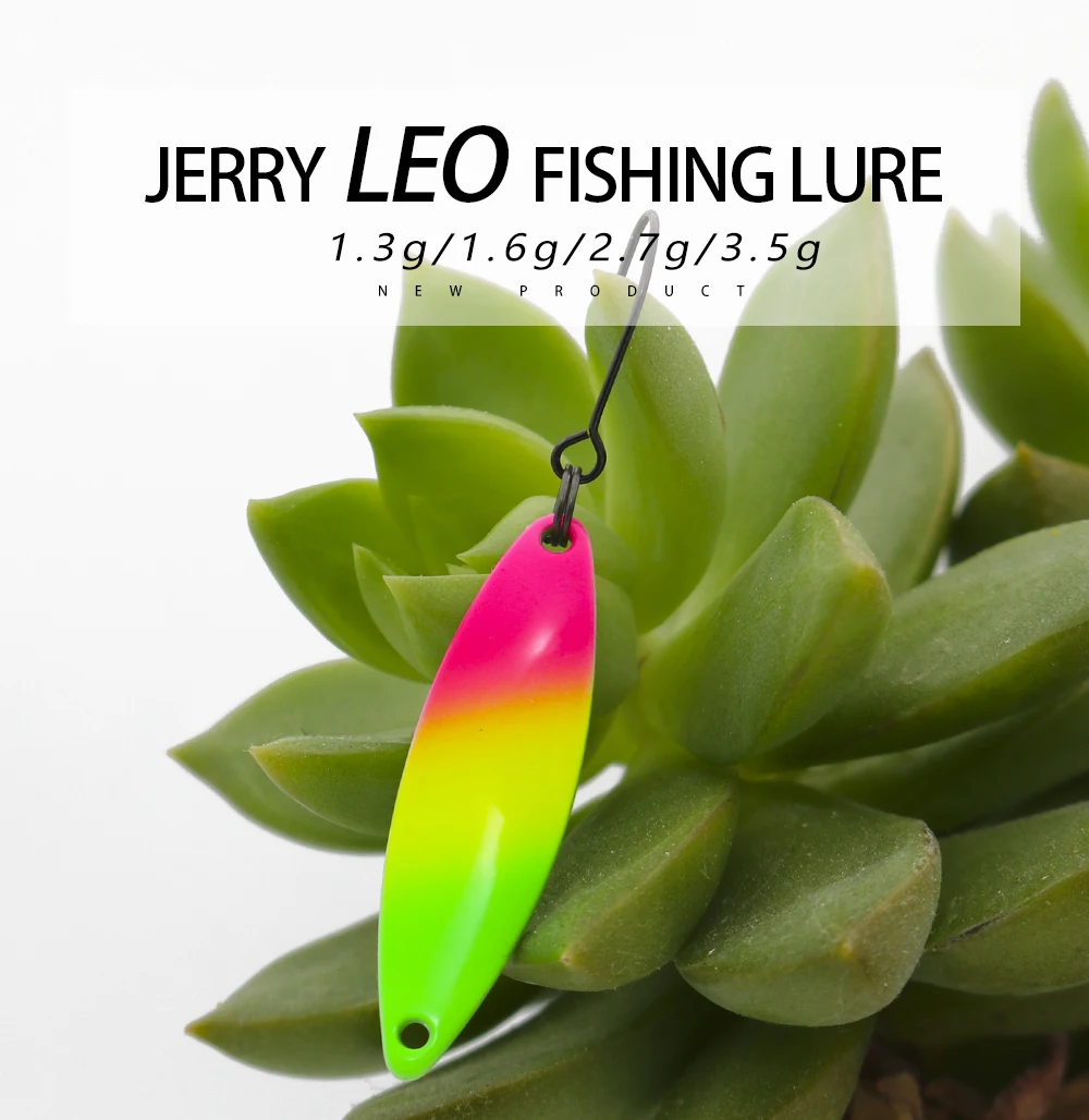 Cucharas de Pesca de trucha de Metal ultraligeras Jerry Leo, señuelos de latón Micro revoloteo, 1,6-3,5g, cebo giratorio de Color UV brillante, Pesca