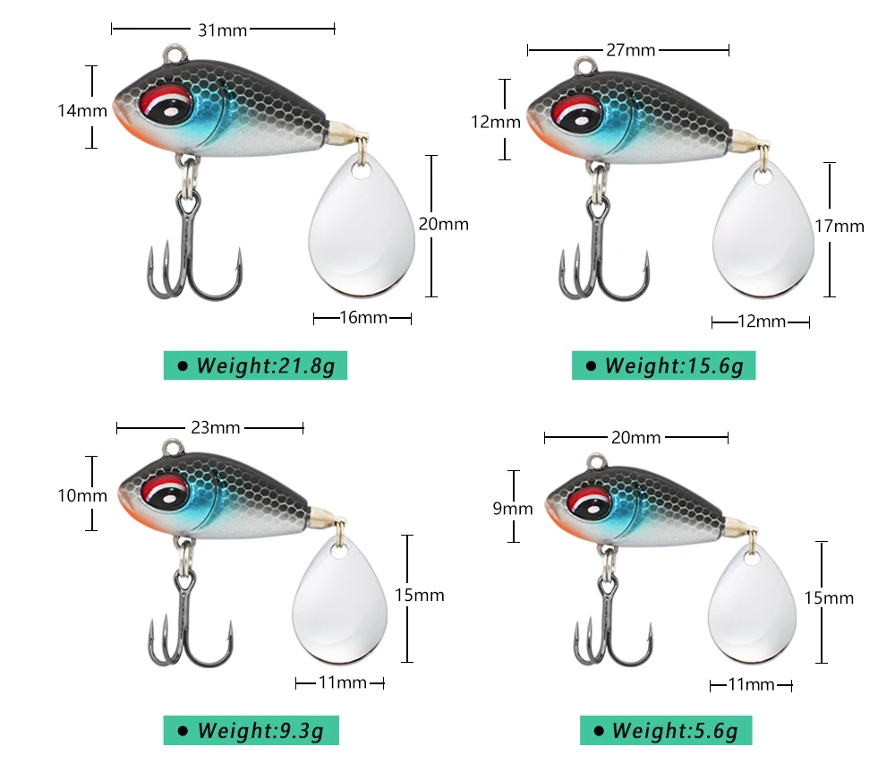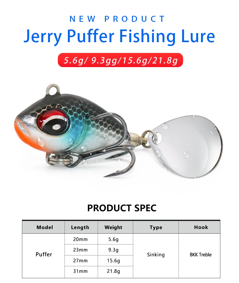 Jerry Puffer Metal VIB Vibración Señuelo de pesca Spin Cebo intermitente Cuchilla Cola 5,6 g 9,3 g 15,6 g 21,6 g Señuelos Wobbler Pesca Tackle
