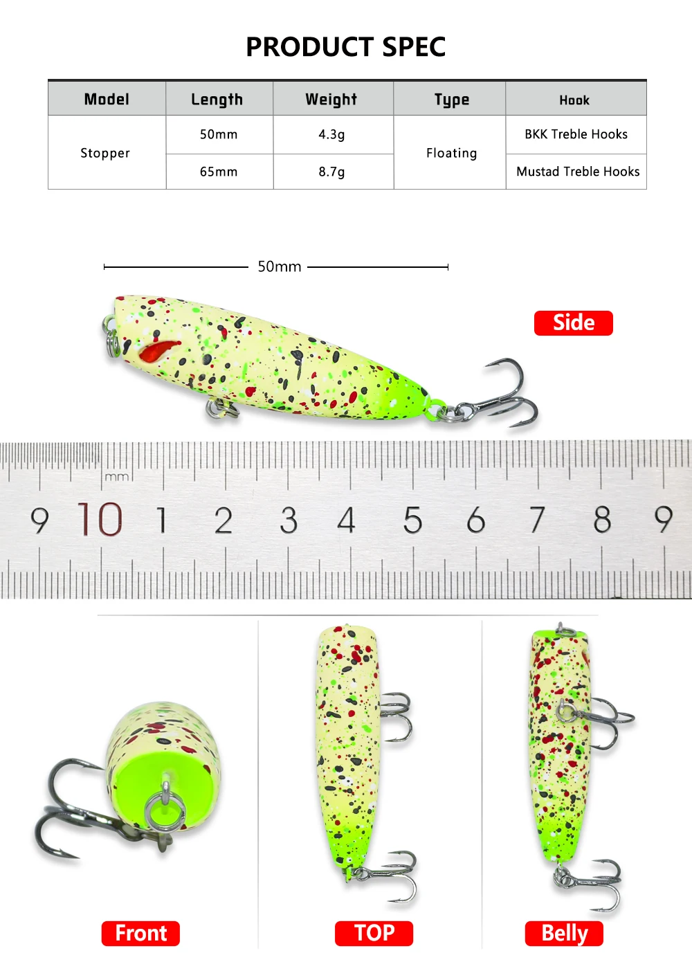 Jerry Stopper Floating Popper Artificial Topwater Bait Ultralight Freshwater Wobbler Lure Trout Bass Perch 50mm Fishing Tackle