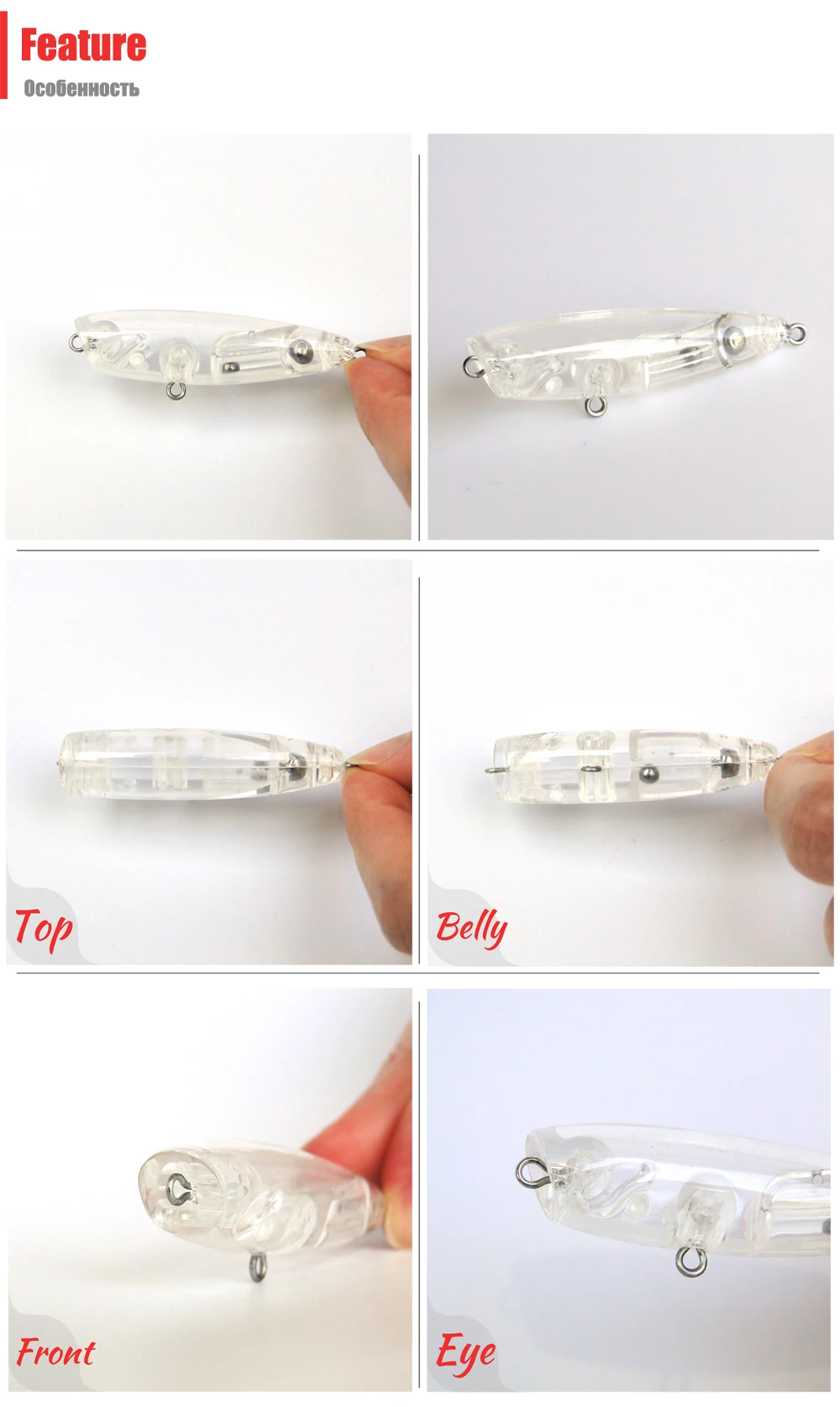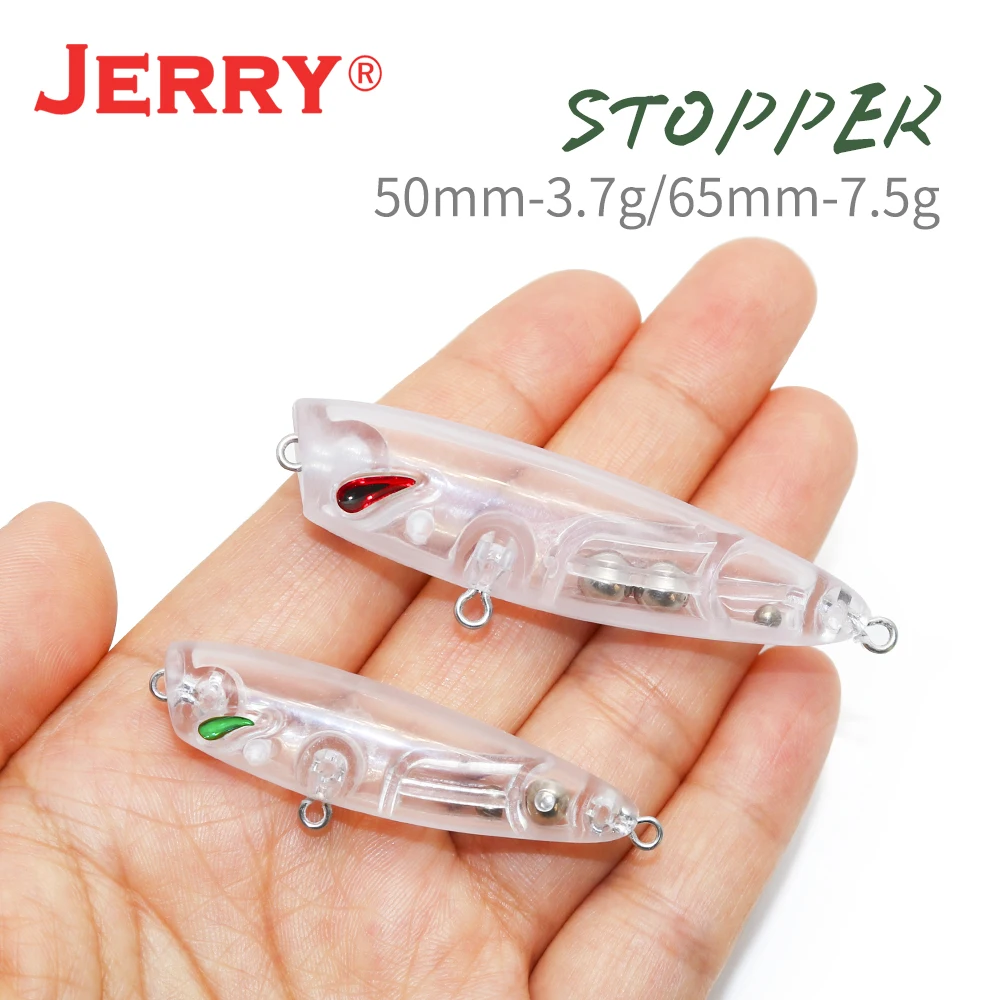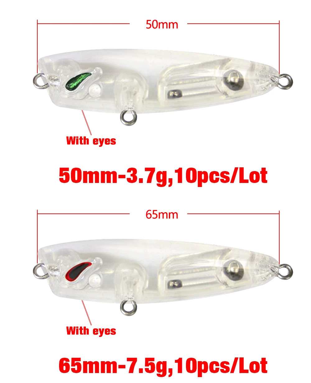 Jerry Stopper-Señuelos de Pesca giratorios, 10 piezas, sin pintar, Cuerpo en blanco, cebo duro flotante, Topwater, Micro Popper, trucha con ojos