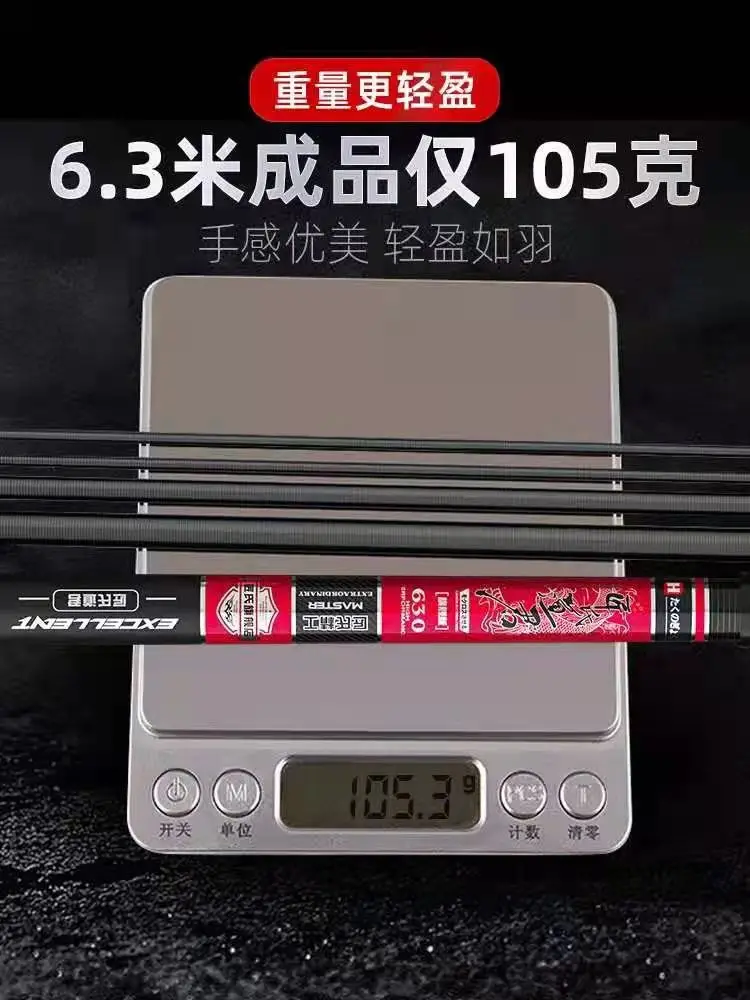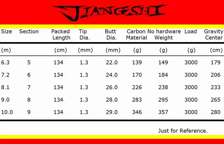 Su peso es de 208G, (sin extremos y anillo tapón, mientras que Black Diamond 28 196g y 19 255g), tan ligero pero tan potente que podemos ver. ¿Cómo puede JIANGSHI obtener este rendimiento? Creo que el diseño de secciones de 135cm de largo ayuda mucho, JIANGSHI 7,2 M son solo 6 secciones, normalmente deberían ser 7 secciones. ¡JIANGSHI debe tomarse como uno bueno! Su precio es más barato y es un producto nuevo en 2021.