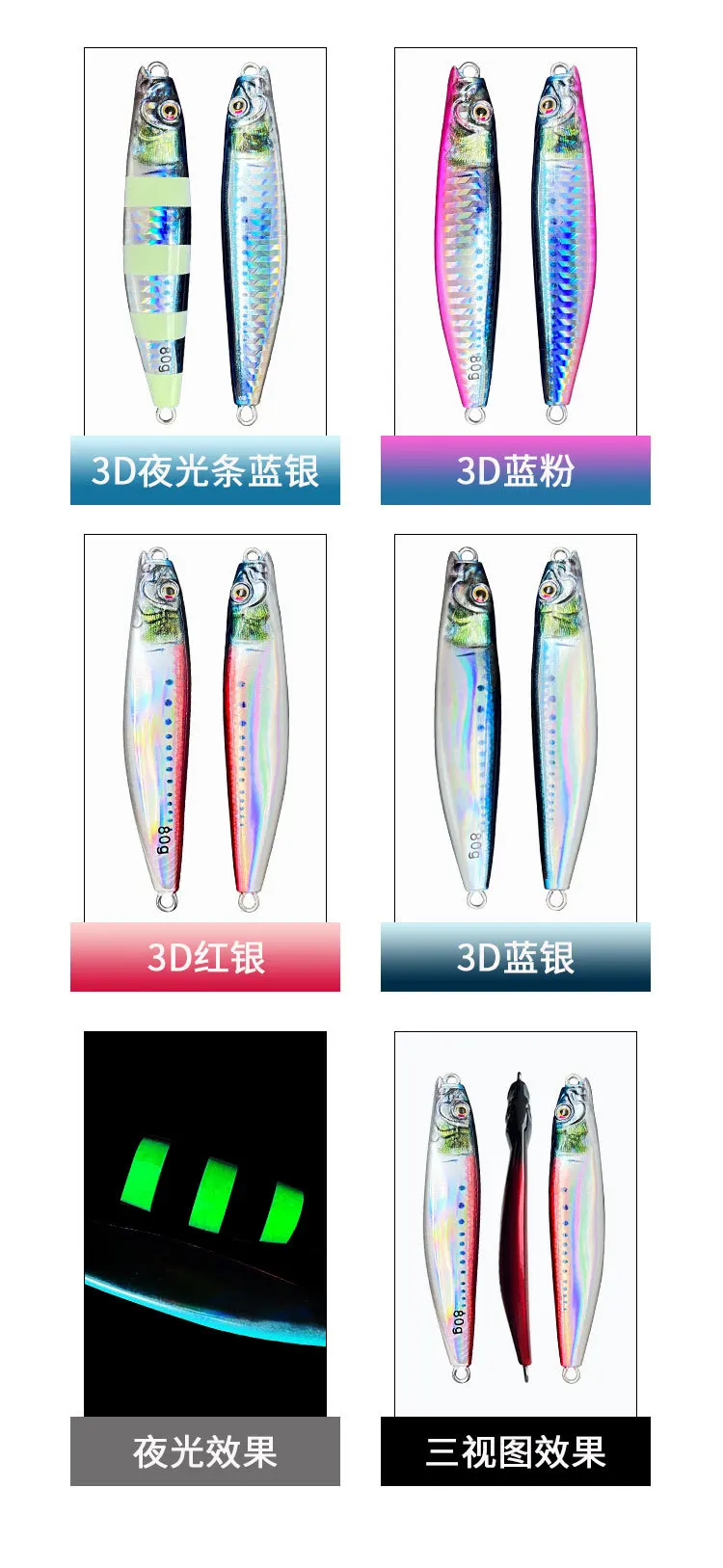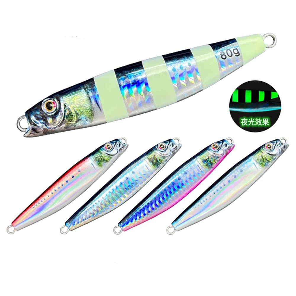 Jig de Metal 3D Shore Jigging 60G80G arrastre fundido cuchara dura cebo pesca de agua salada lubina trucha señuelos atún Mahi Marlin