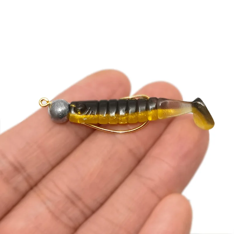 Mini anzuelo con cabeza de plomo, 1g/2g/3g, 10 unids/lote, anzuelo de pesca en roca, señuelo, anzuelo de granizo, gusano suave, accesorios de aparejos de pesca