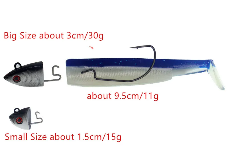 Jig de pesca en el océano, anzuelo de gusano, cebo suave de pez, cola en T, 15g, 30g, señuelos artificiales, juego de 2 piezas, venta