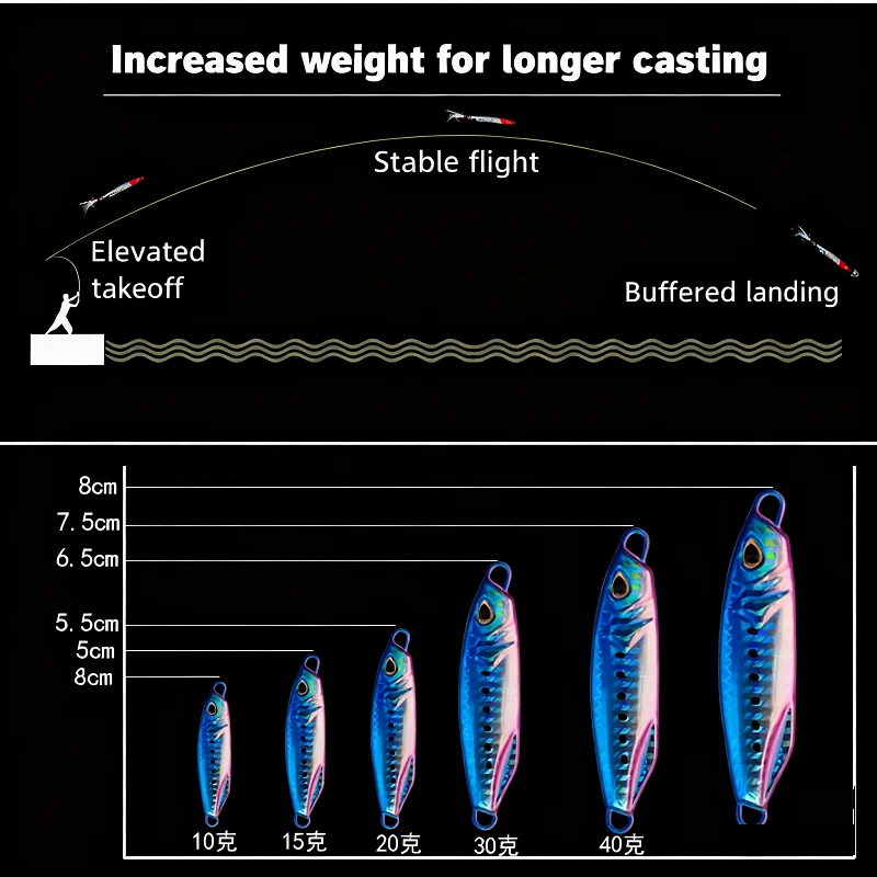 • Opciones de peso de 30G: Opciones de peso disponibles de 30G, este señuelo es perfecto para diferentes condiciones de pesca.El peso más pesado es ideal para la pesca en aguas más profundas, mientras que la opción más ligera es perfecta para aguas poco profundas.