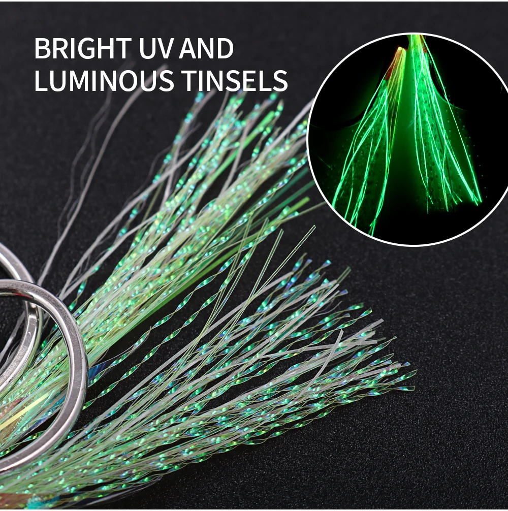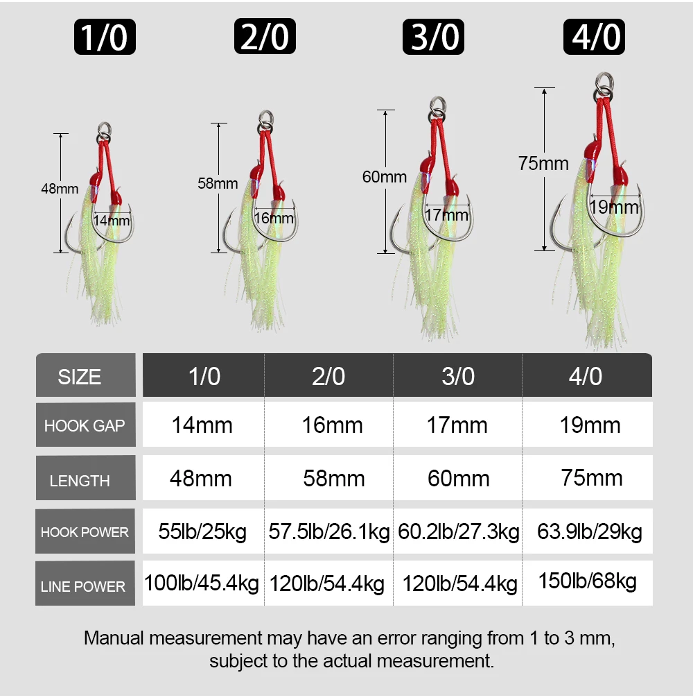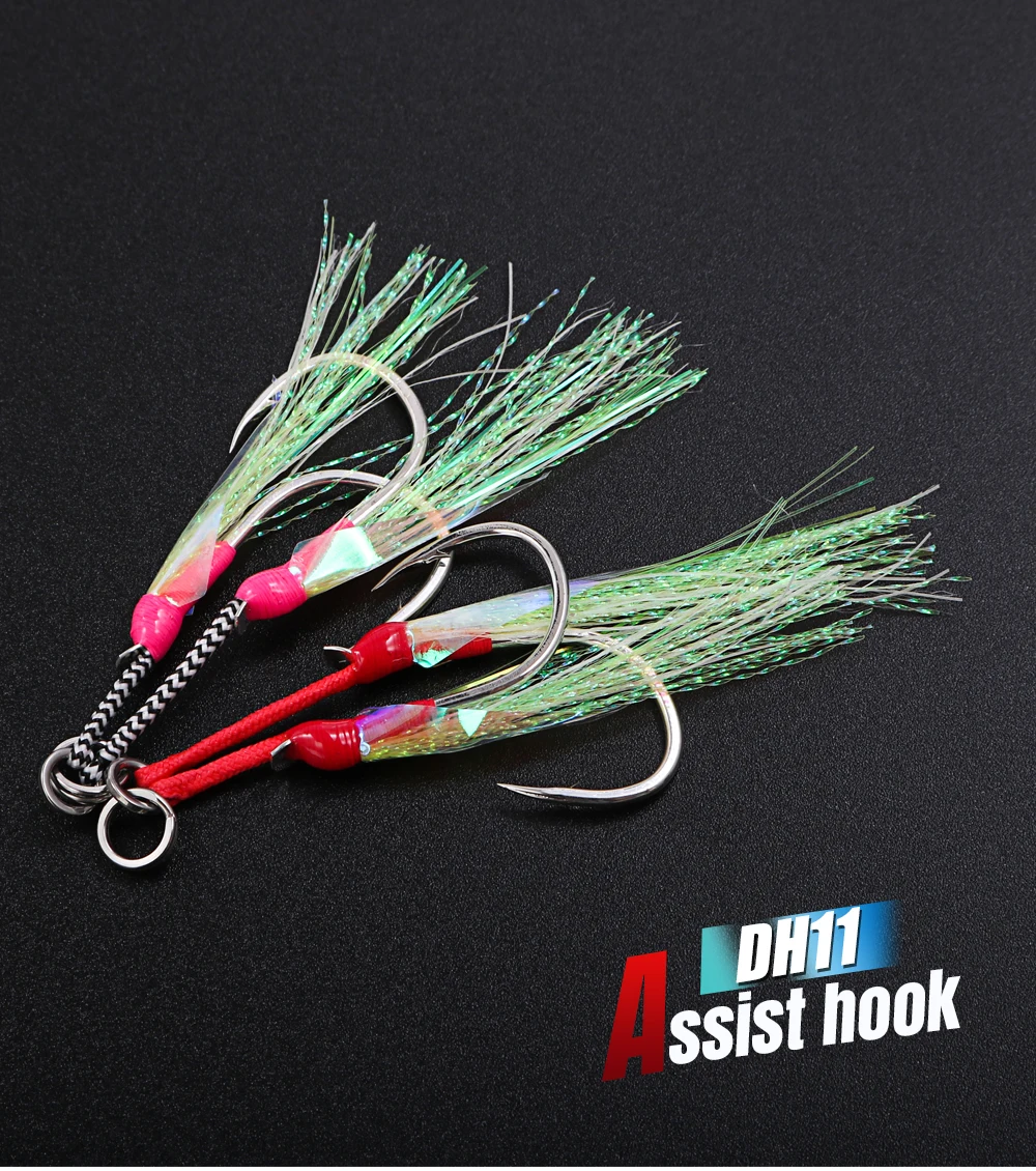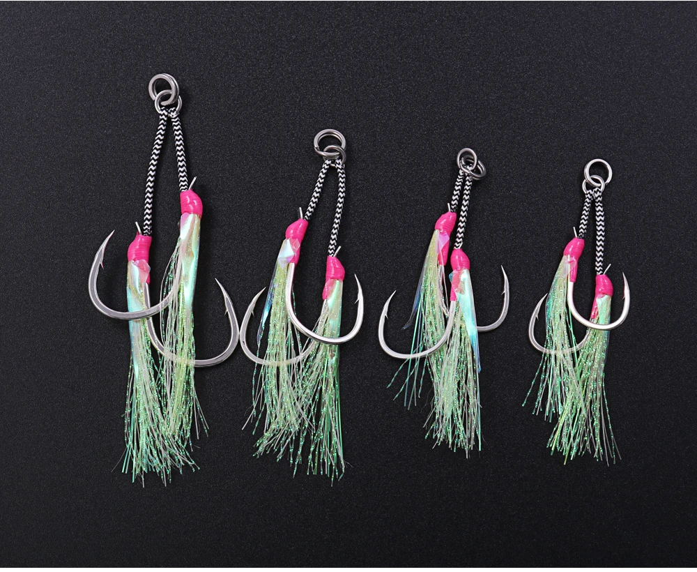 JIGGING PRO 1/0 2/0 3/0 4/0 Ganchos de doble asistencia de alta resistencia Anzuelos de Jigging con núcleo de alambre de acero Equipo de pesca luminoso de agua salada