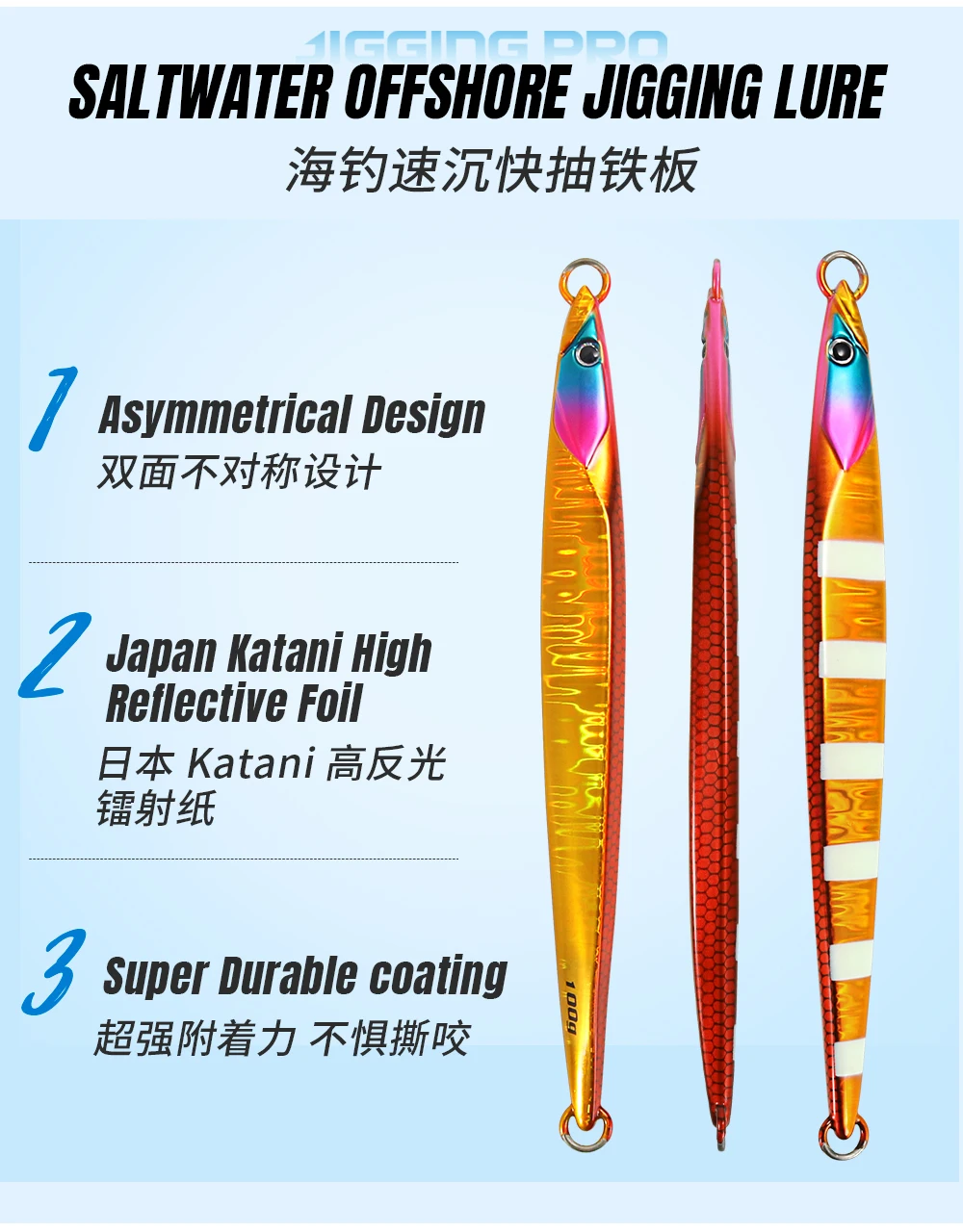 JIGGING PRO 100g 120g 150g plantilla Vertical velocidad plantilla de Metal señuelo de Jigging asimétrico cebo de pesca de agua salada