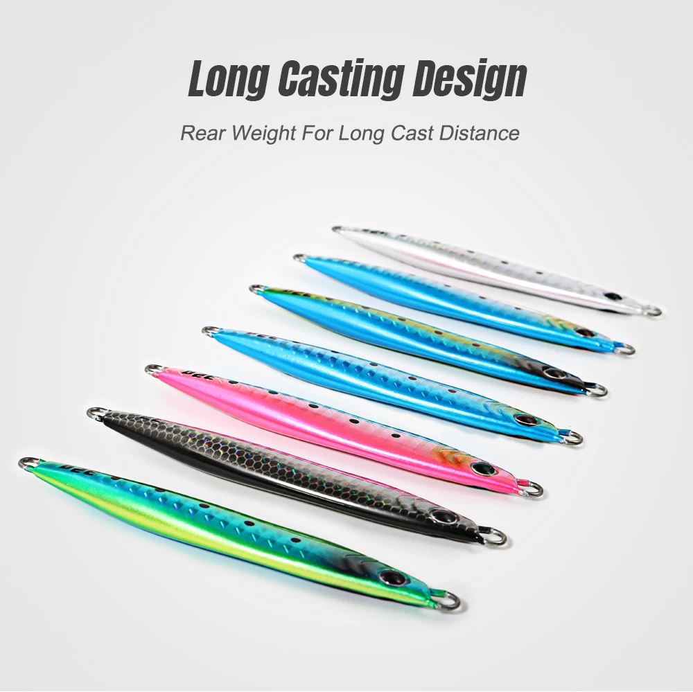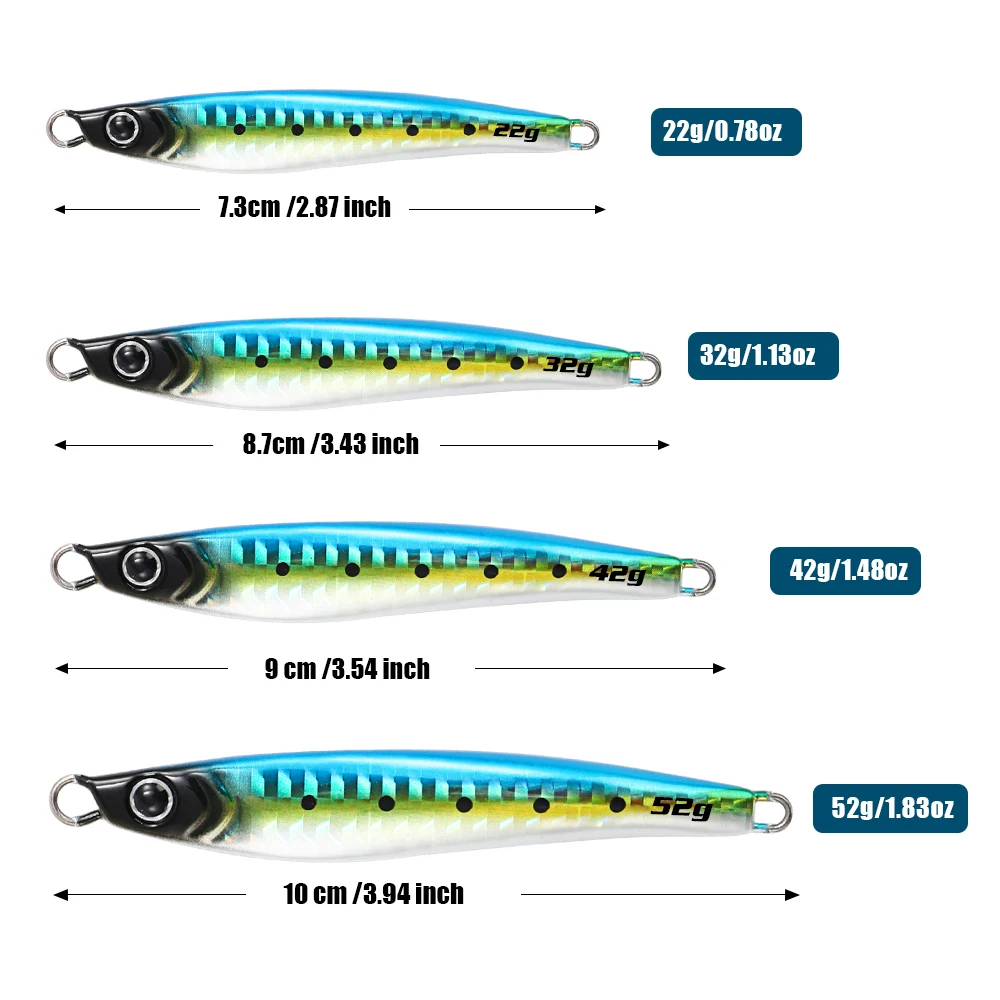 JIGGING PRO 22g 32g 42g 52g JUGULO Jigs de hundimiento rápido Metal de fundición larga Jig Shore Jigging señuelo cebo de pesca en agua salada