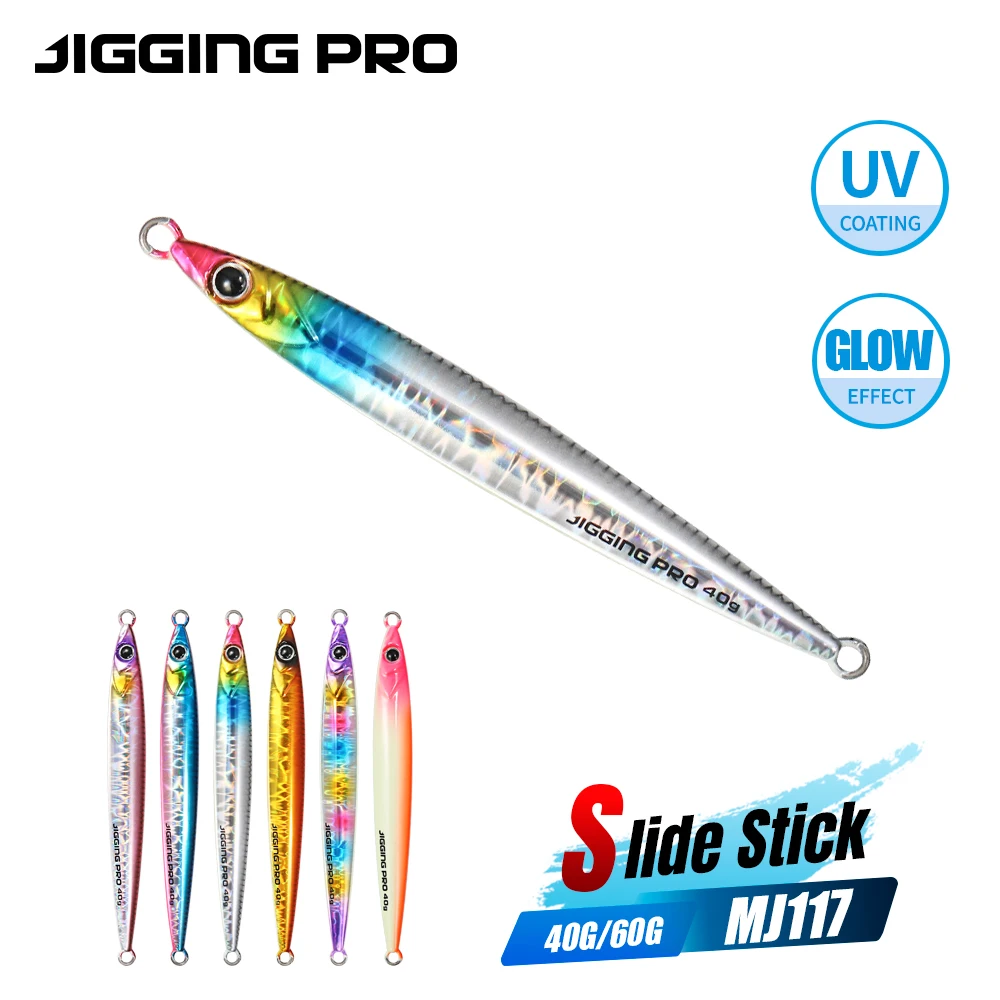 JIGGING PRO 40g 60g palo deslizante plantilla de Metal señuelo de Jigging Shore cebo de pesca de agua salada atún Kingfish caballa
