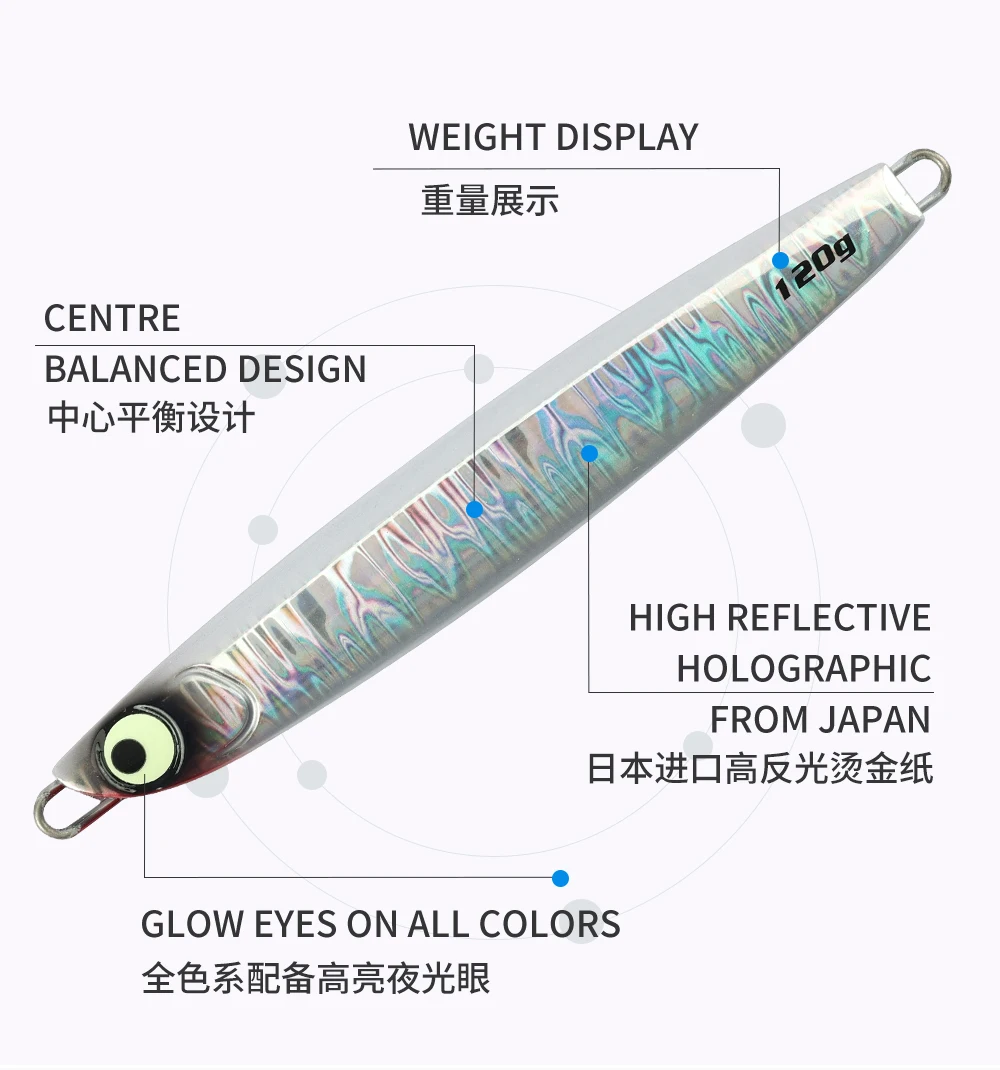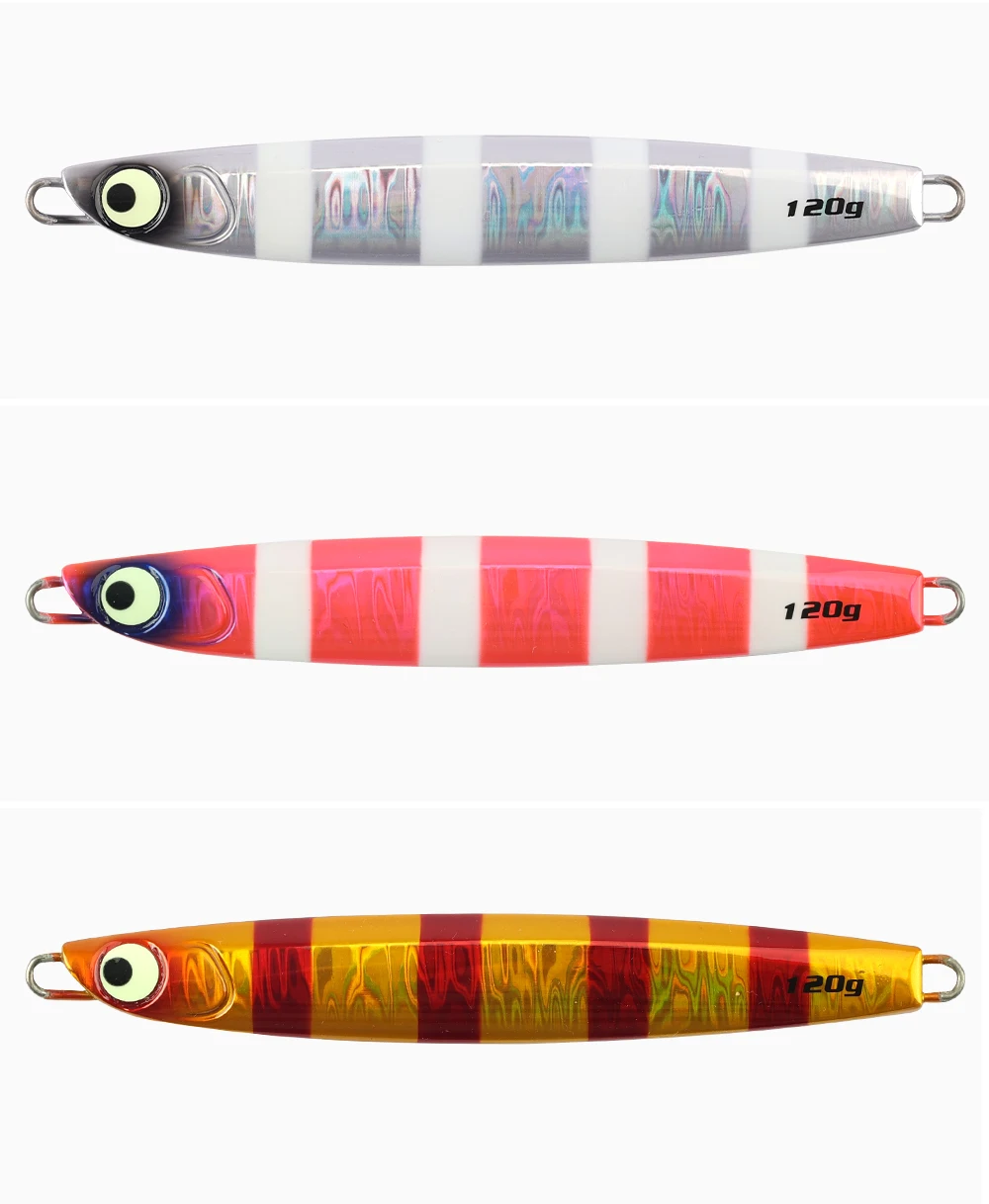 JIGGING PRO 60g 80g 100g 120g 160g señuelo de Jigging Jig de Metal de agua salada cebo de pesca luminoso de caída lenta cola de pelo