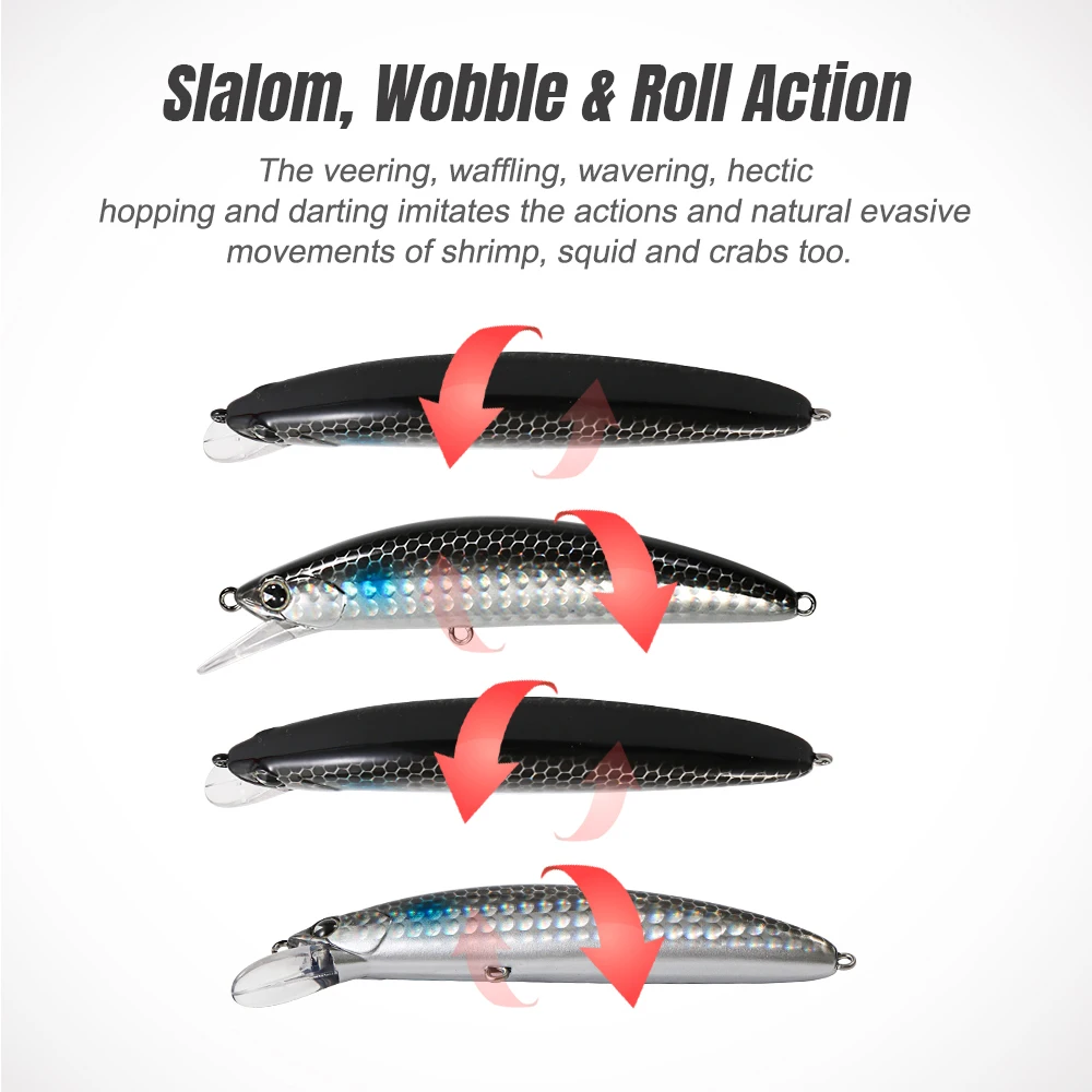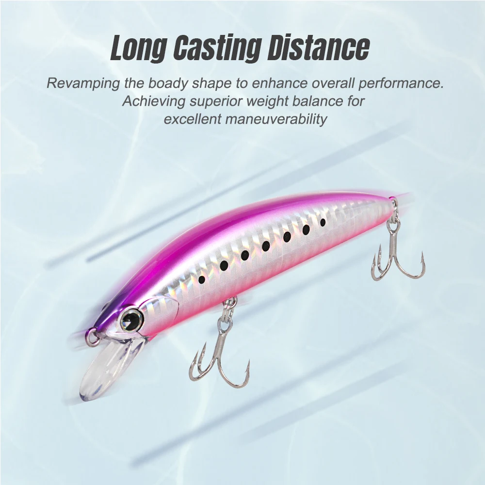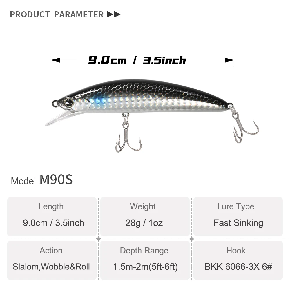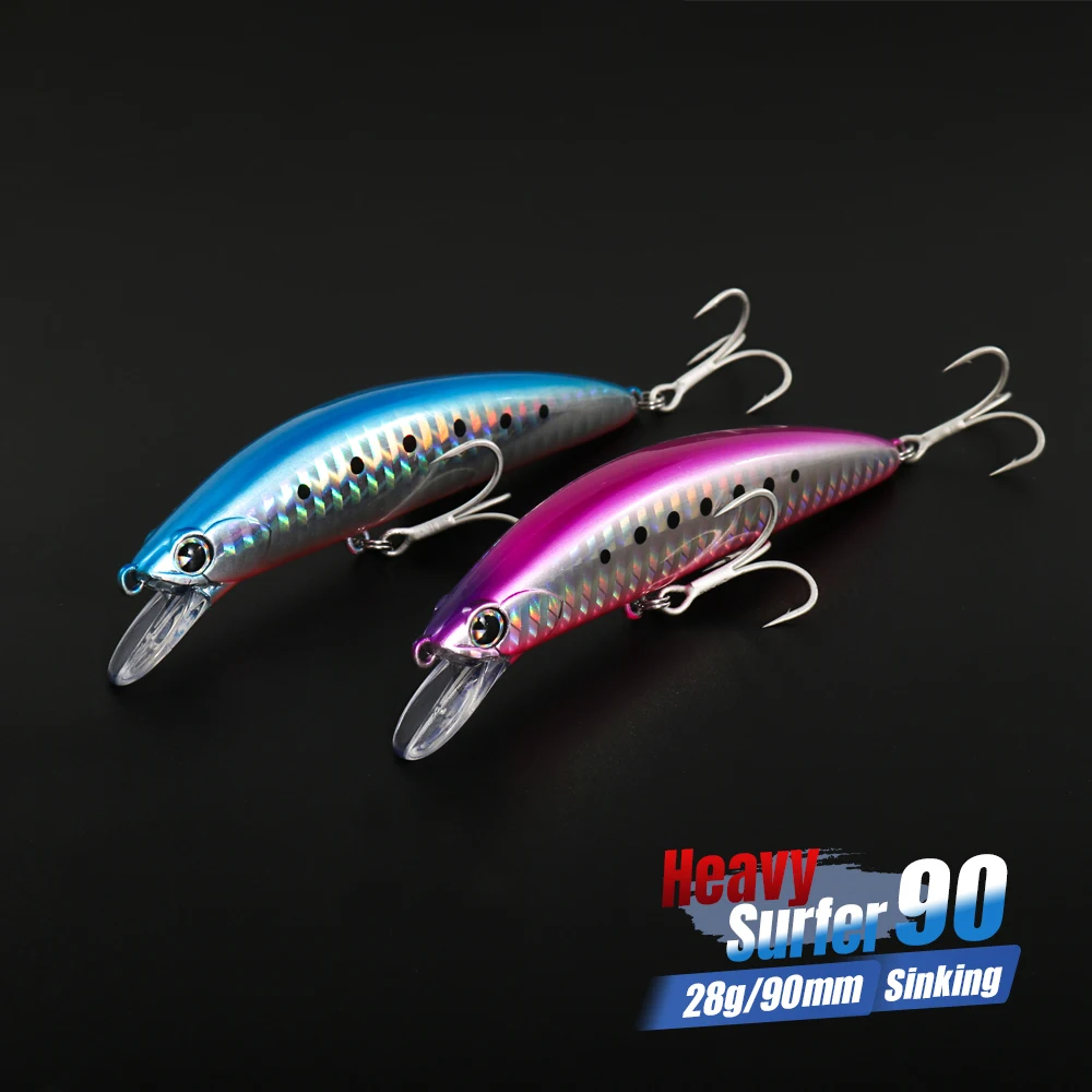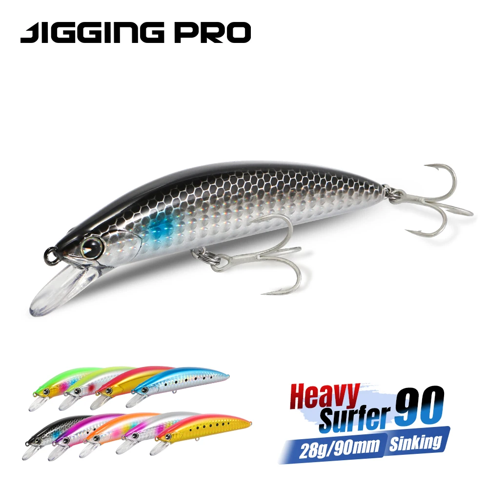 JIGGING PRO 90mm 28g surfista pesado hundimiento Minnow señuelo pesca en el mar cebos duros de fundición larga para peces planos