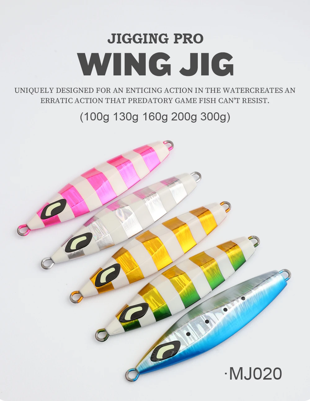 JIGGING PRO 100g 130g 160g 200g Señuelo de jigging lento Diseño japonés Ocean Stinger Wing Lure Metal Jig