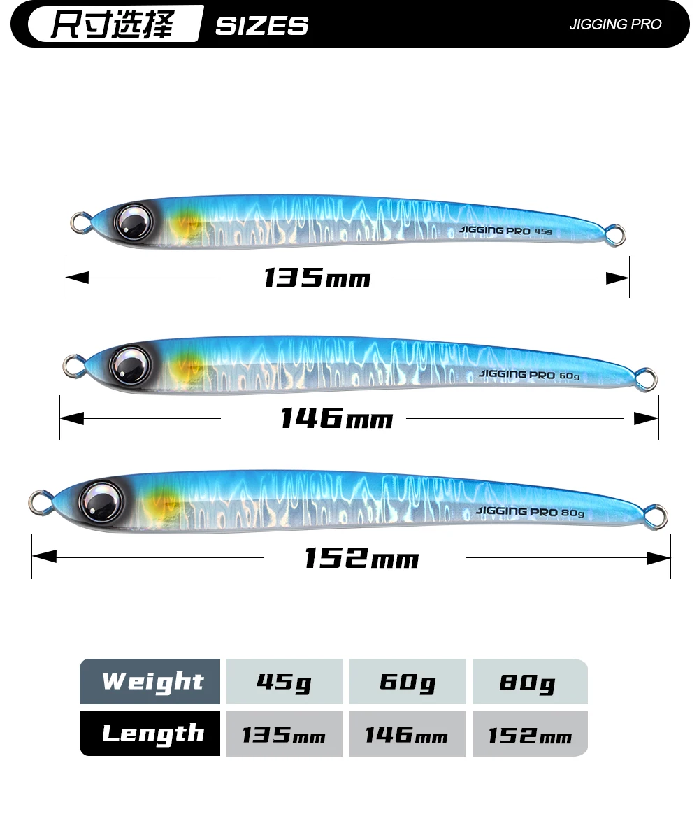 JIGGING PRO-señuelo de pesca de Metal, 45g, 60g, 80g, Kingfish Amberjack