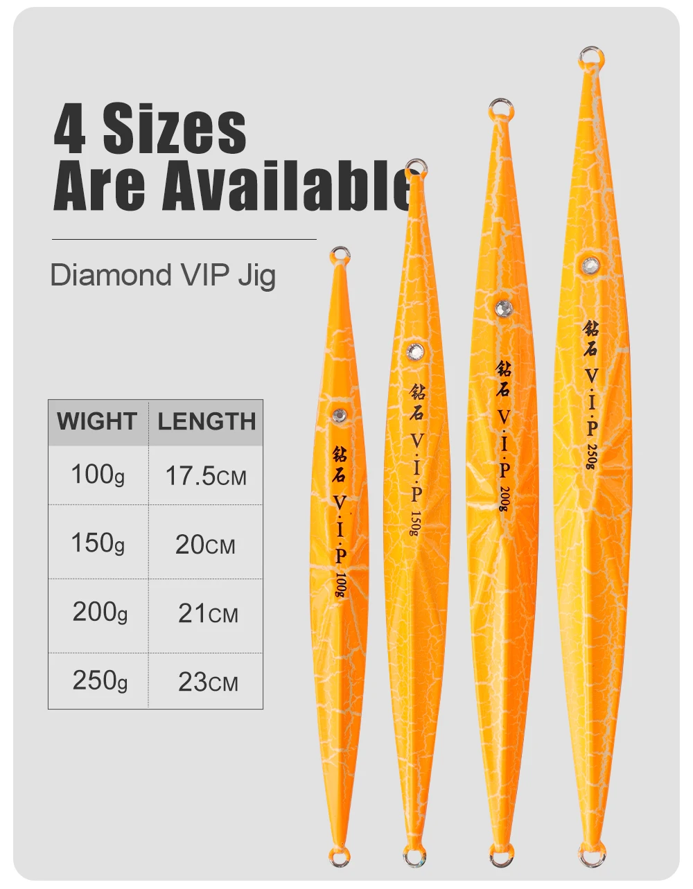 JIGGINGPRO 100g 150g 200g 250g diamante VIP Jig señuelo de Jigging Vertical pesca en el mar plantilla de Metal señuelo de pesca