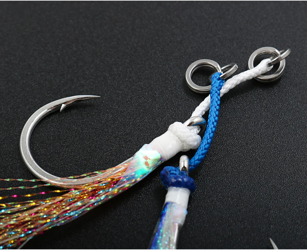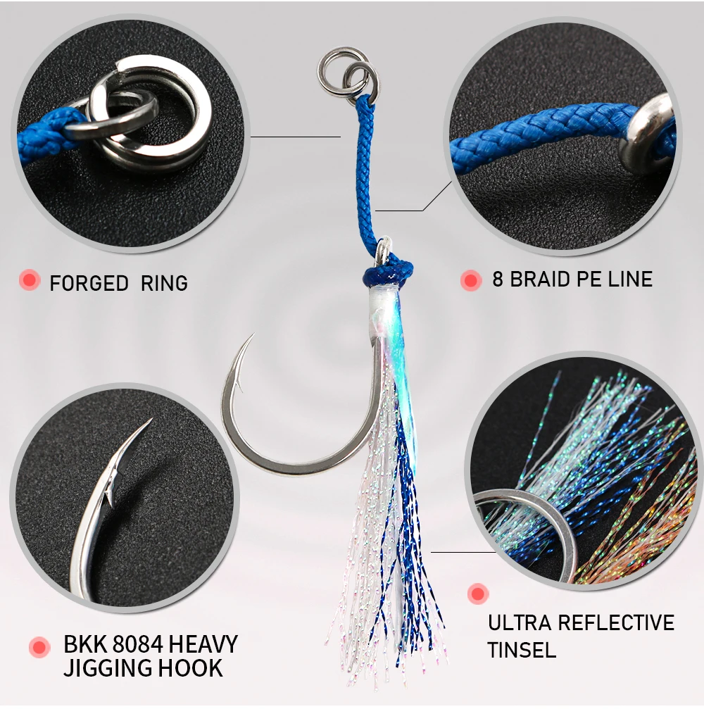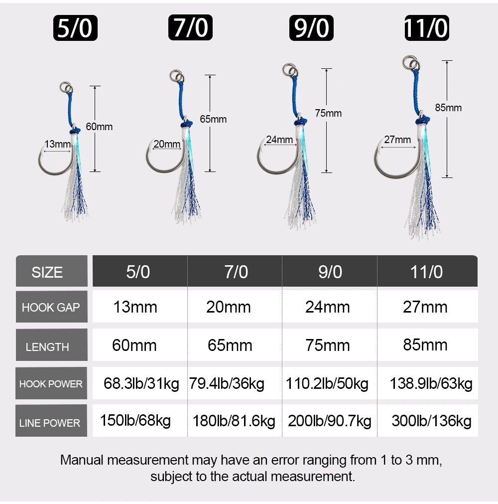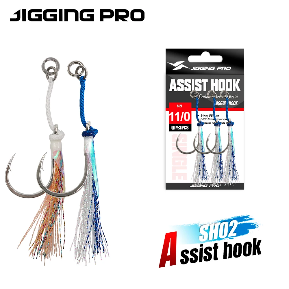 JIGGINGPRO 3 unids/bolsa 5/0 7/0 9/0 11/0 anzuelo de Jigging de alta resistencia plantilla de Metal gancho de asistencia individual anzuelos de pesca de agua salada