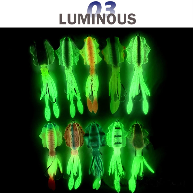Señuelo luminoso de calamar, 2g, 7g, 15g, 20g, 60g, plantillas de calamar UV, Wobblers de pesca en barco para pesca en roca, pesca en el mar, vinilo De PescaCaracterísticas: