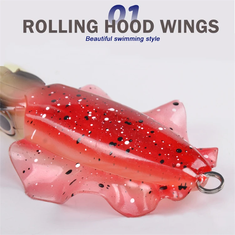 3.Alas de capó con ruedas. Las alas atraerán a los peces con la acción de giro y natación más realista, como un calamar real.