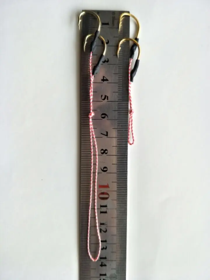 JINHONGKANG 100 unids/lote plantillas de Pesca fundidas anzuelo de asistencia con púas doble par de anzuelos hilo pluma Pesca señuelo de Pesca de acero rico en carbono