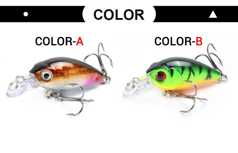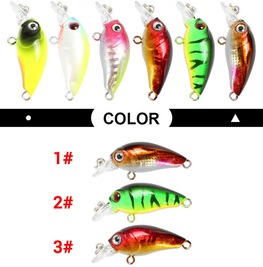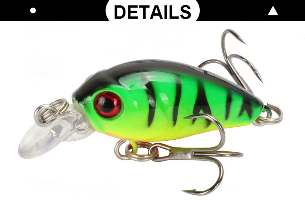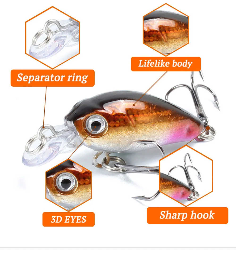 Color: 6 coloresLongitud: 4,5 cmPeso: 3,8gTamaño del anzuelo: acero rico en carbono n. ° 6, tres anzuelosProfundidad de inmersión: Sistema de superficie
