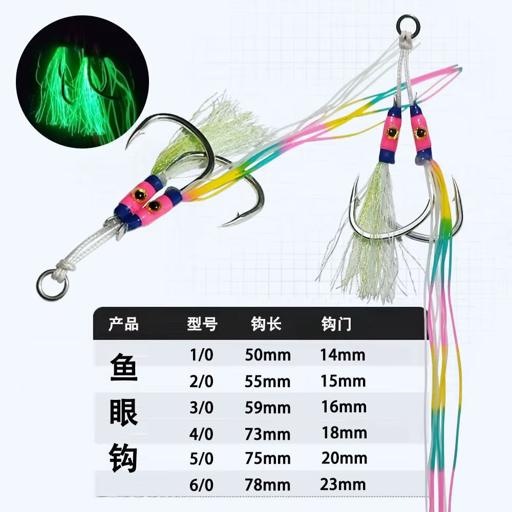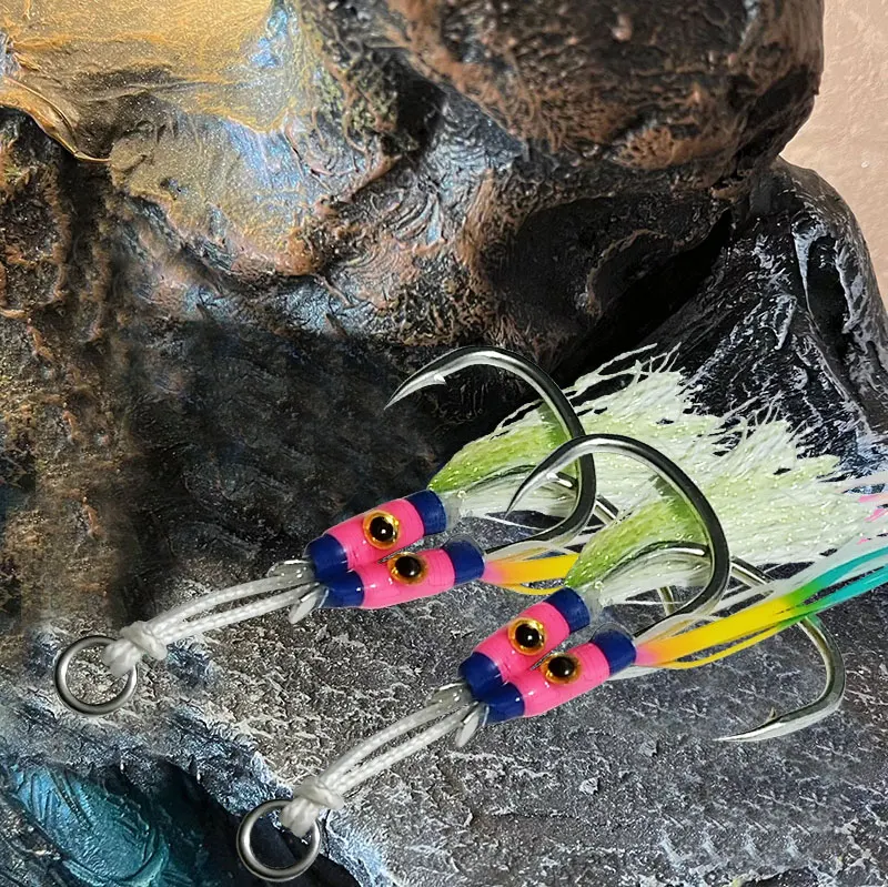 Jjg-anzuelos de pesca con doble púas, señuelo de pesca en el mar, anzuelo de Lucio brillante, anzuelos de Jigging lento/rápido, 10 pares