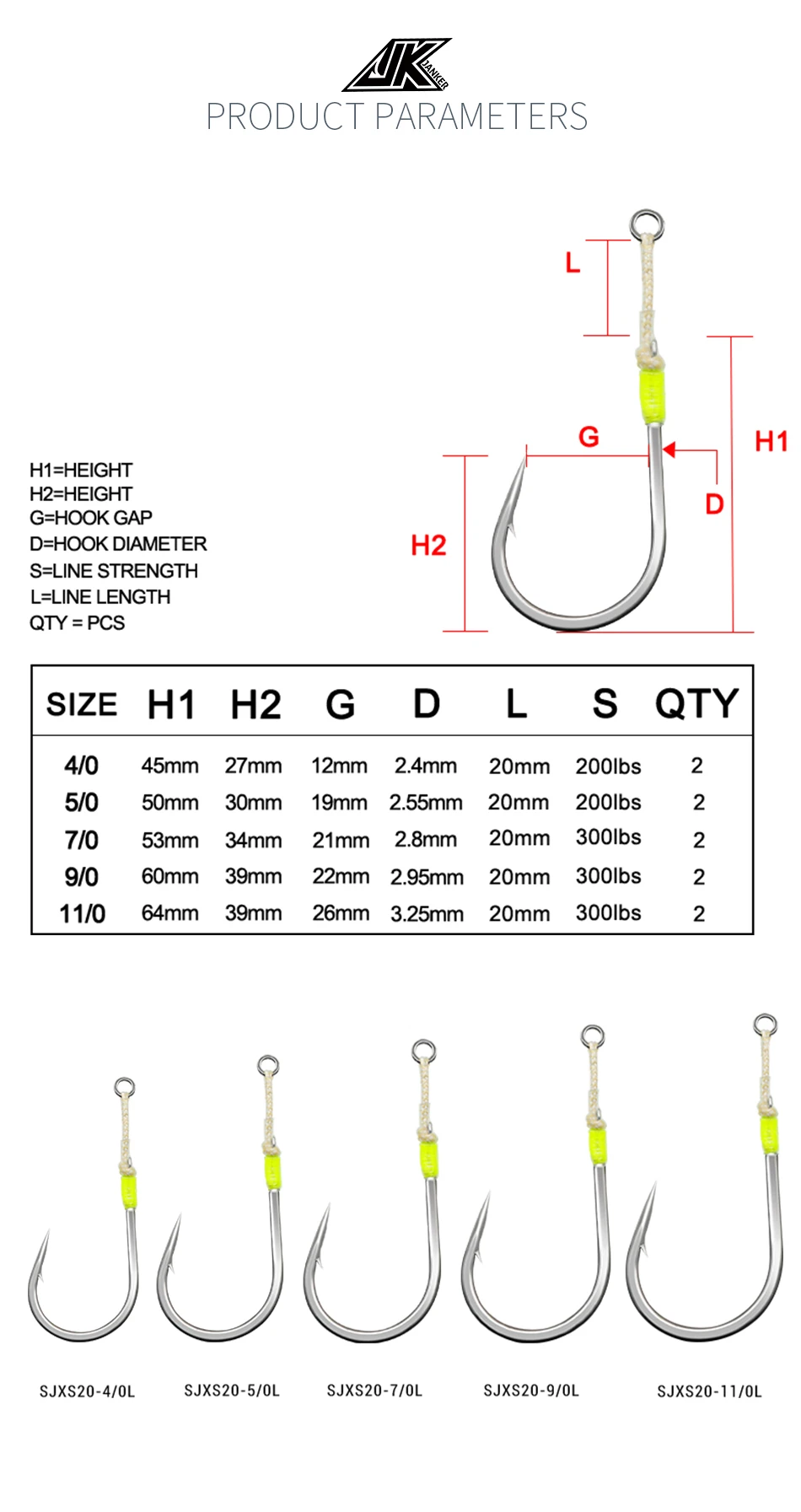 JK Fishing SJXS(20/35/50) Juego de anzuelos de Asistencia Única de Kevlar