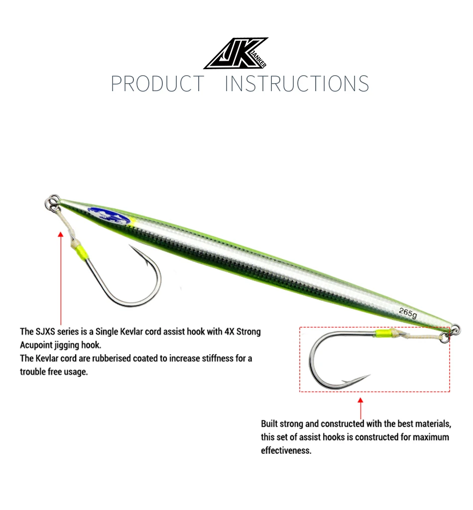 La serie SJXS es un gancho de asistencia de cordón de Kevlar simple con gancho de jigging Acupoint fuerte 4X.