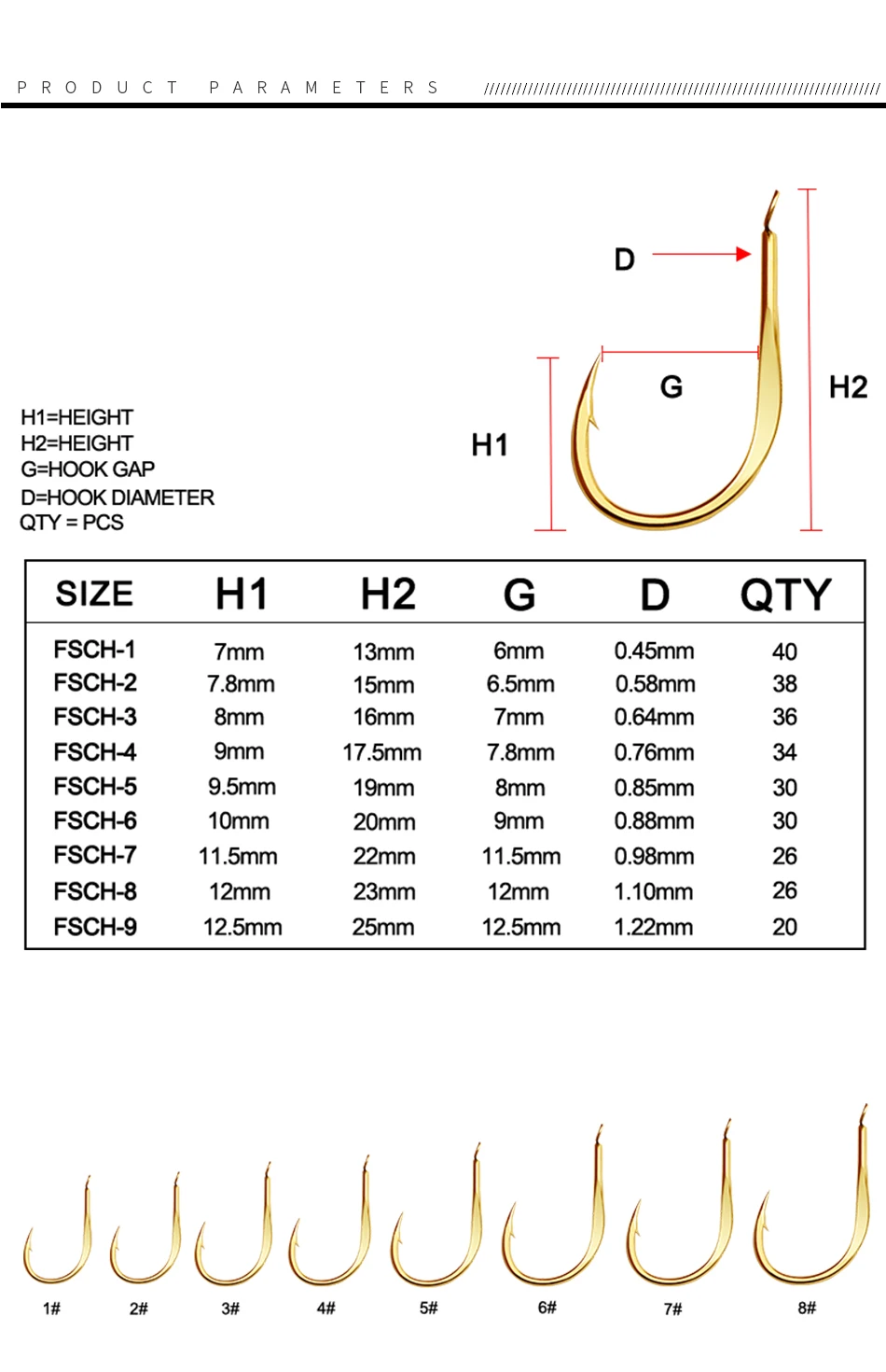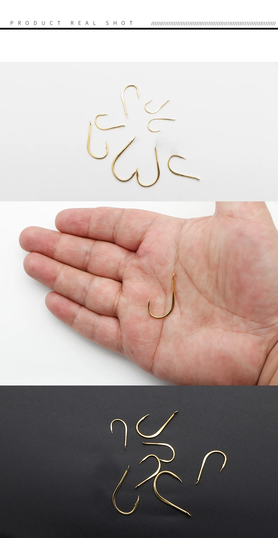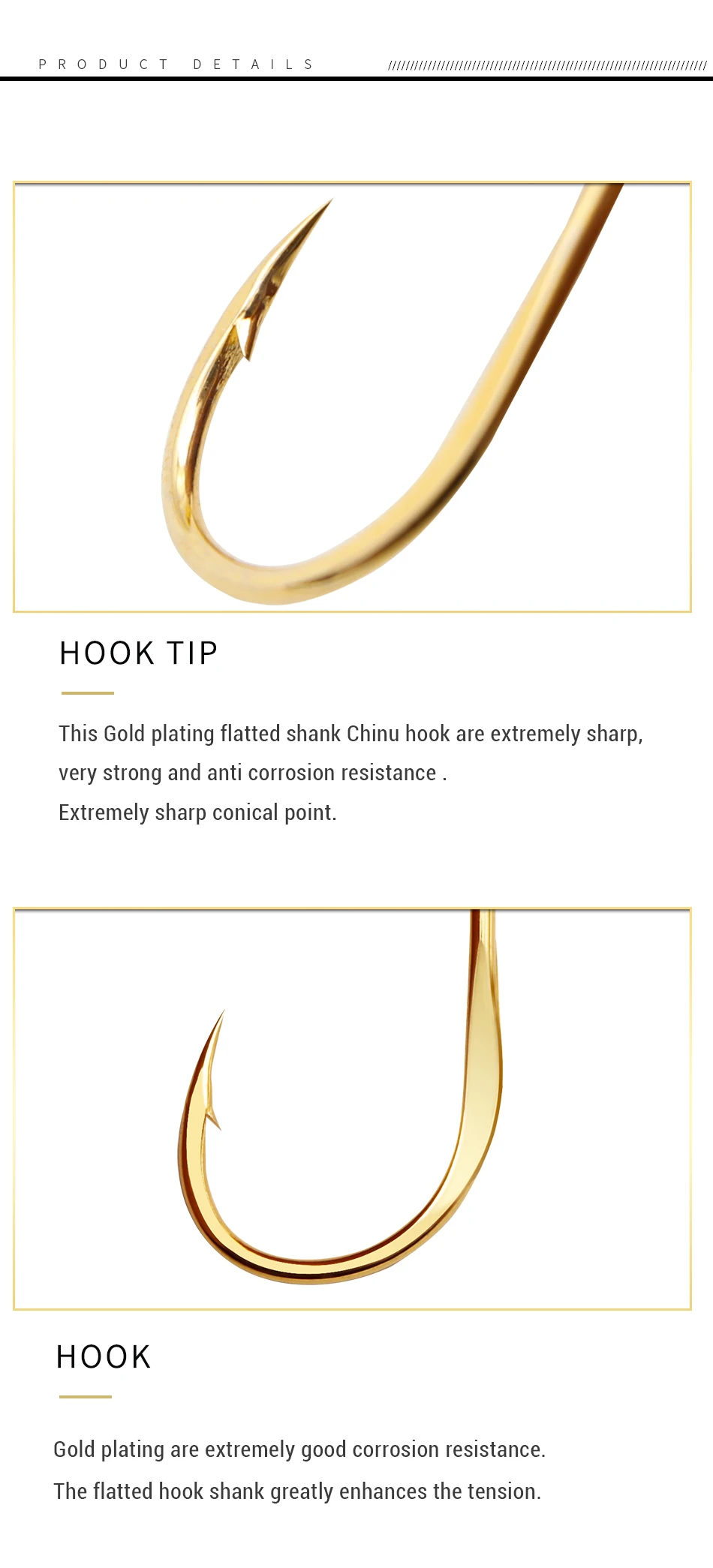 Este gancho Chinu de vástago plano chapado en oro es extremadamente afilado, muy fuerte y resistente a la corrosión.