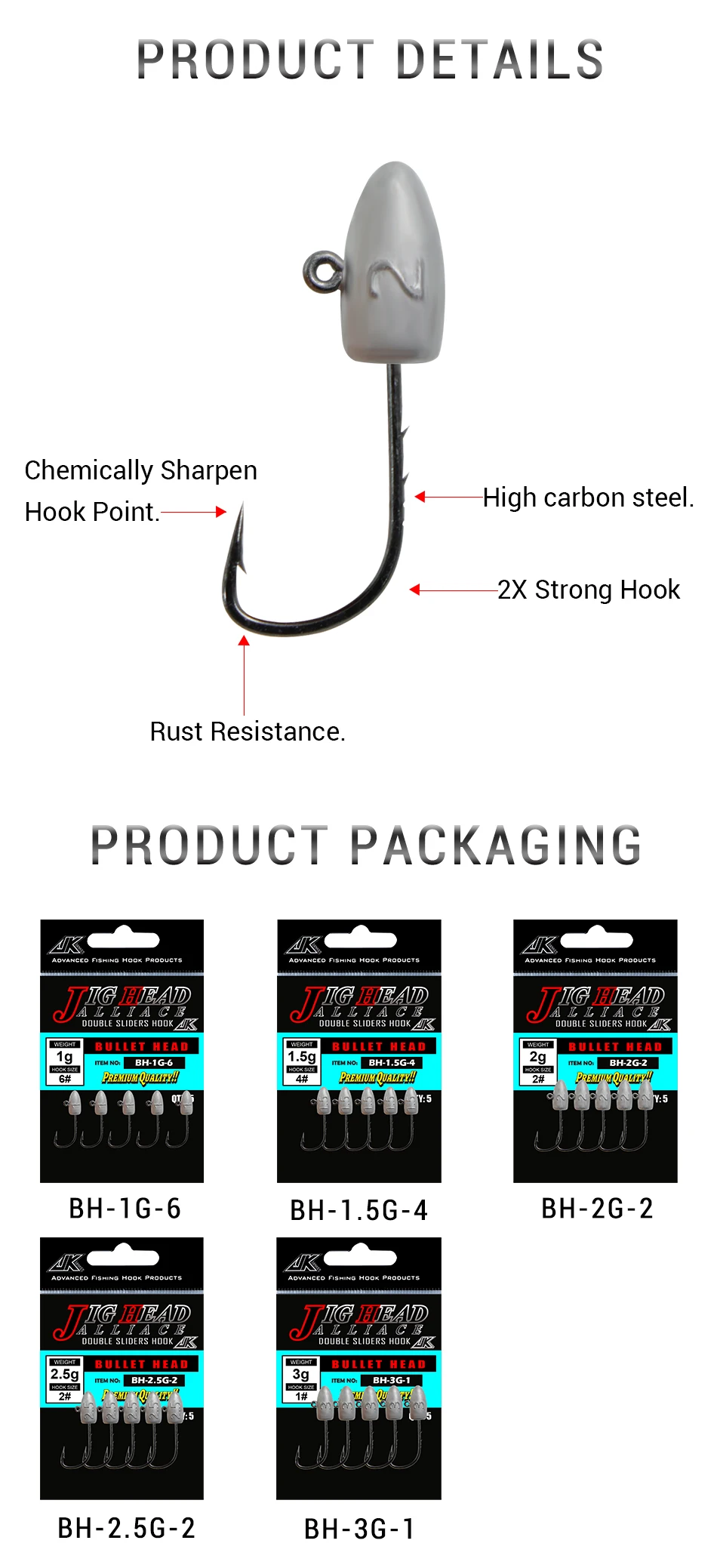 El Jighead de la serie BH de JK está hecho de materiales de calidad con ganchos fuertes.
