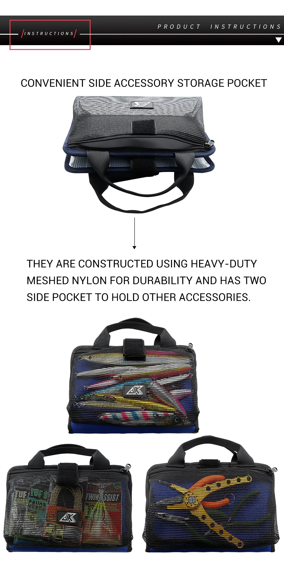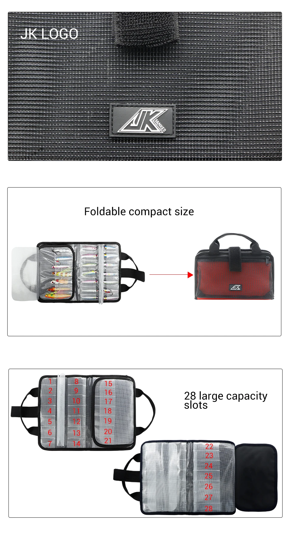 JK-Bolsa de almacenamiento portátil a prueba de agua, accesorio con placa de hierro, plomo, cuero, cubierta protectora, equipo de pesca