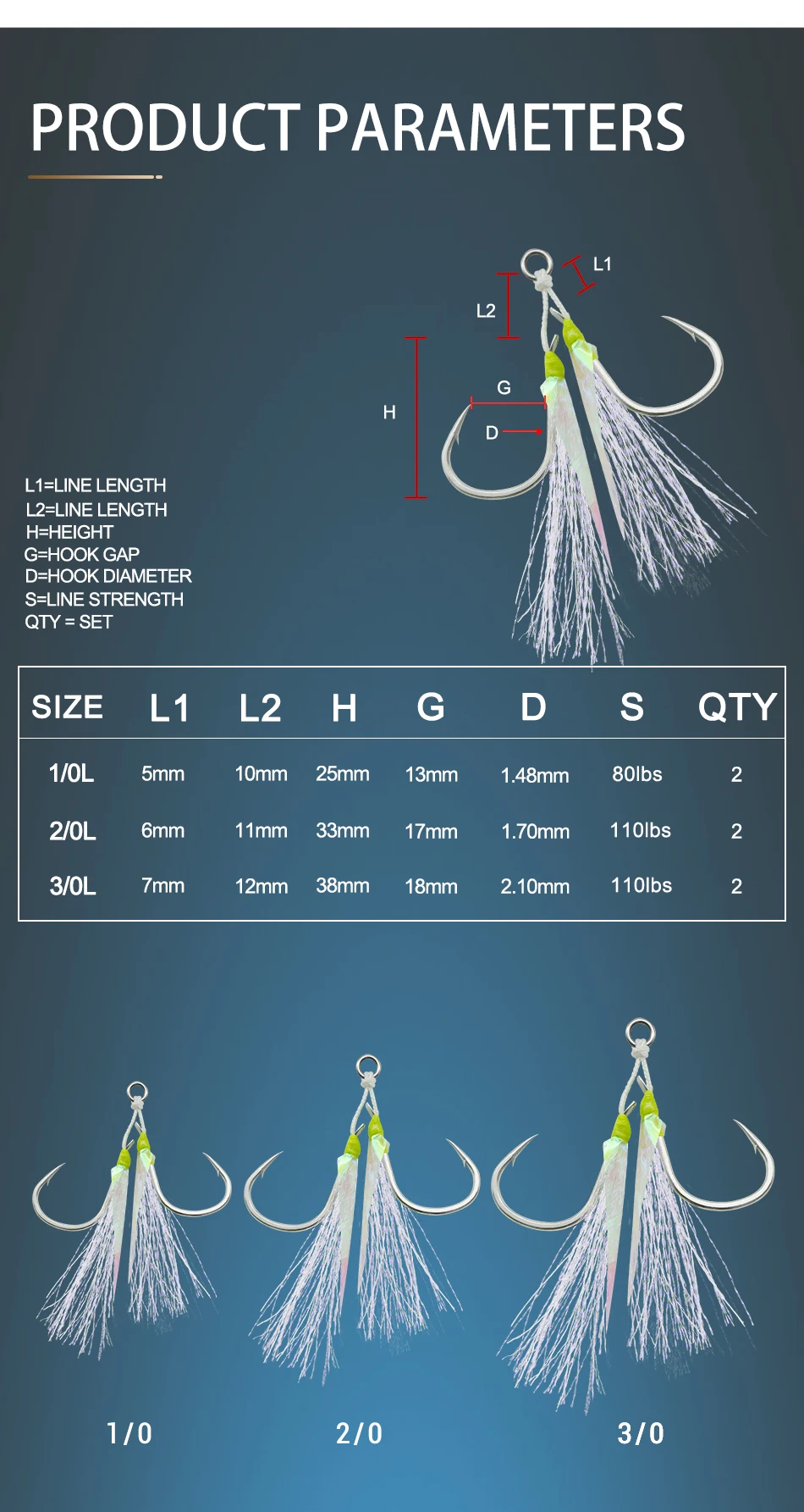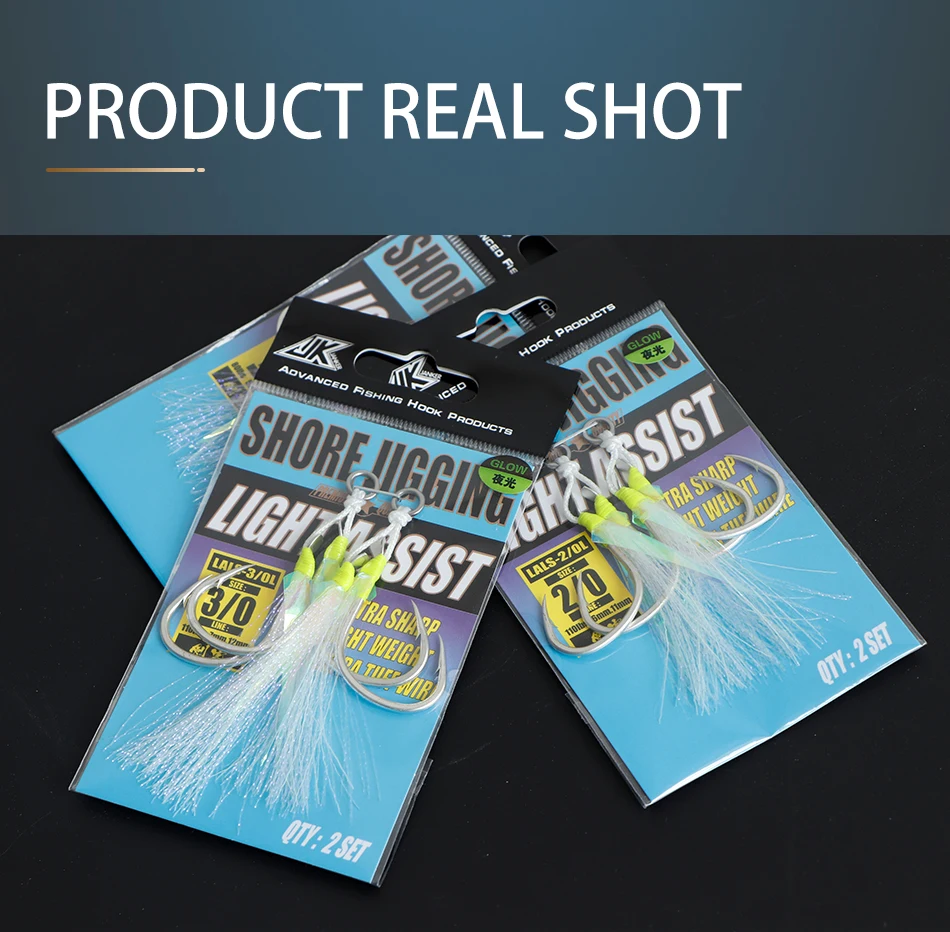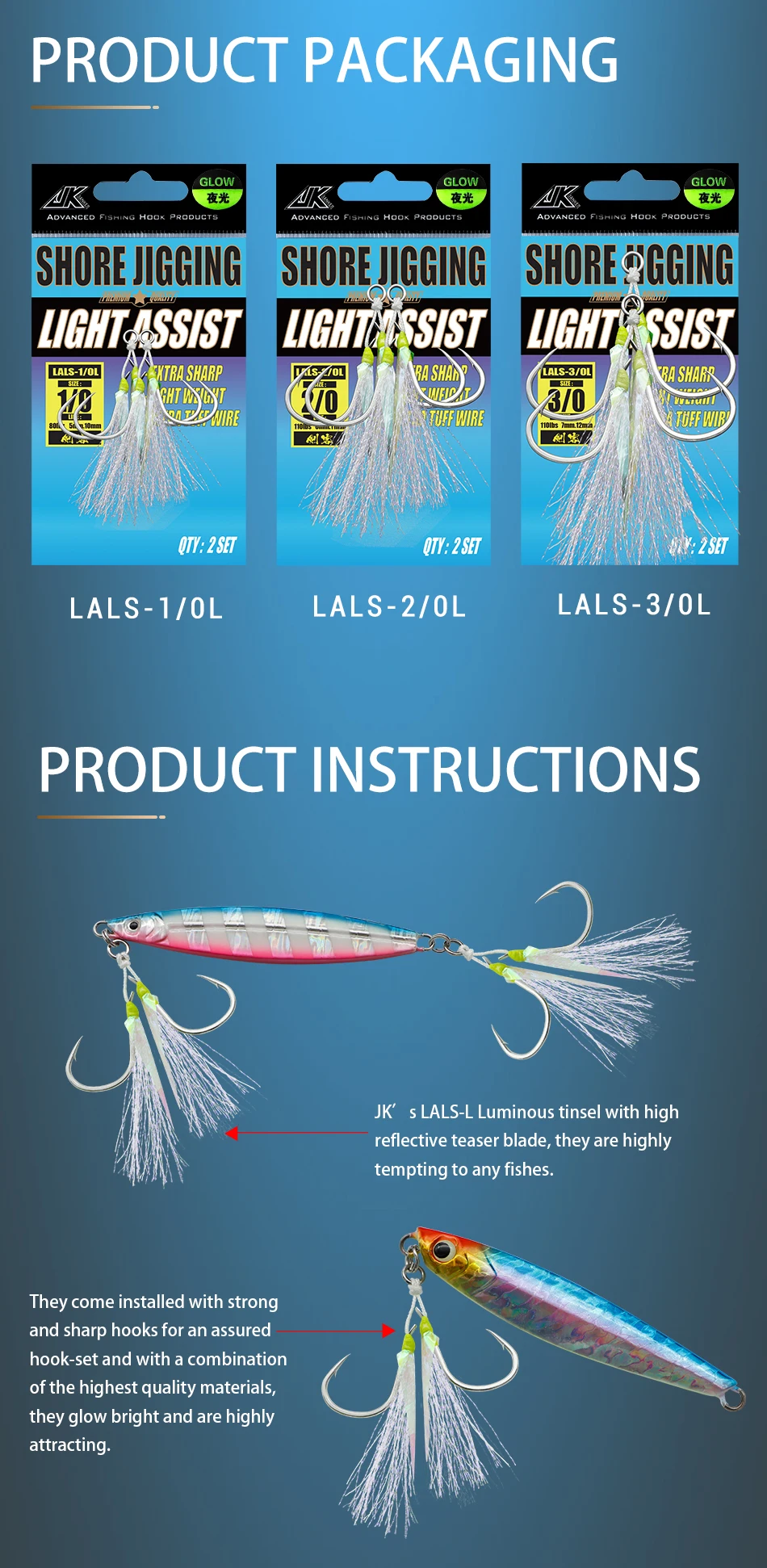Juego de anzuelos de doble asistencia luminosos para pesca JK
