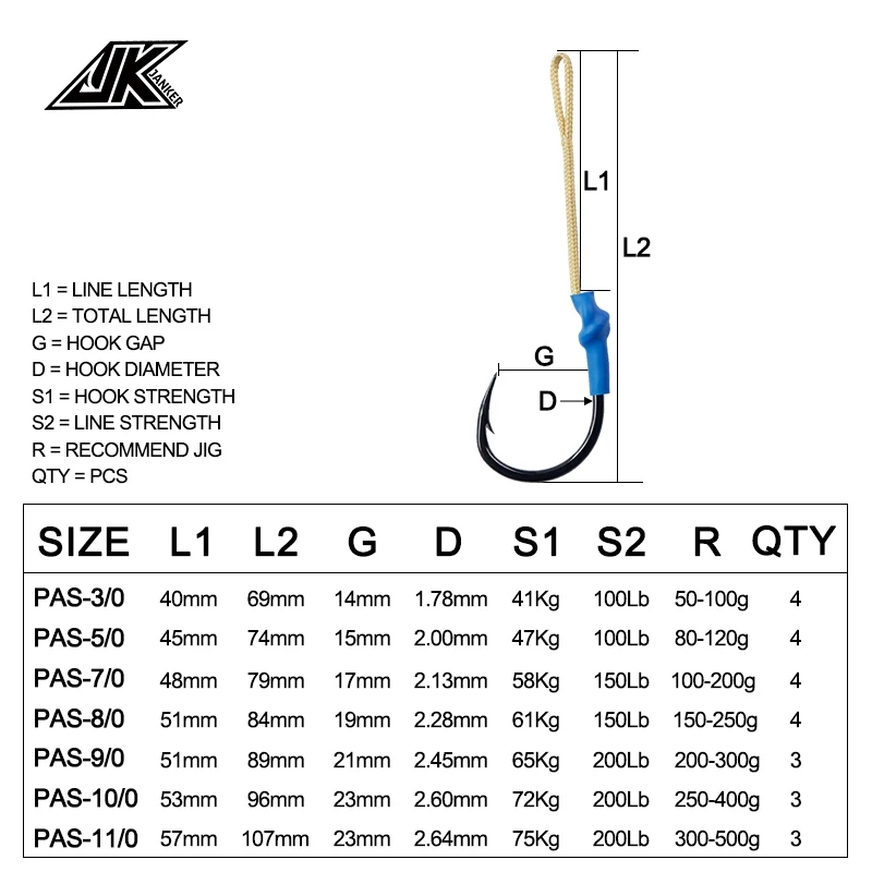 ... Estos anzuelos de asistencia son perfectos para anuncios de hundimiento rápido, atún GT o persiguiendo Monster size Kingfish y amberjack.