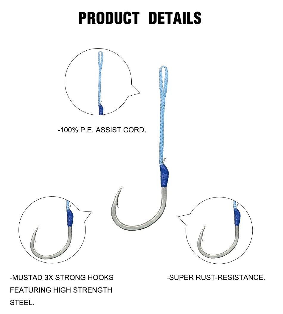 JK 5PACK 5/0 6/0 Anzuelos de Pesca Japón PE Línea Nudo Jigging Anzuelos Agua Salada Besugo Anzuelo de Pesca Snap Assist Fish Hook
