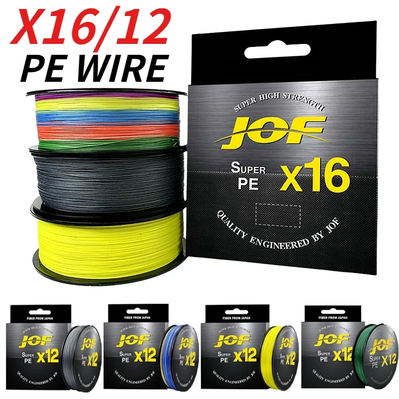 JOF 12/16 hebras Japón súper fuerte PE trenzado hilo de pescar multifilamento multicolor tejido de agua salada cuerda 500/300M 0,14-0,7mm