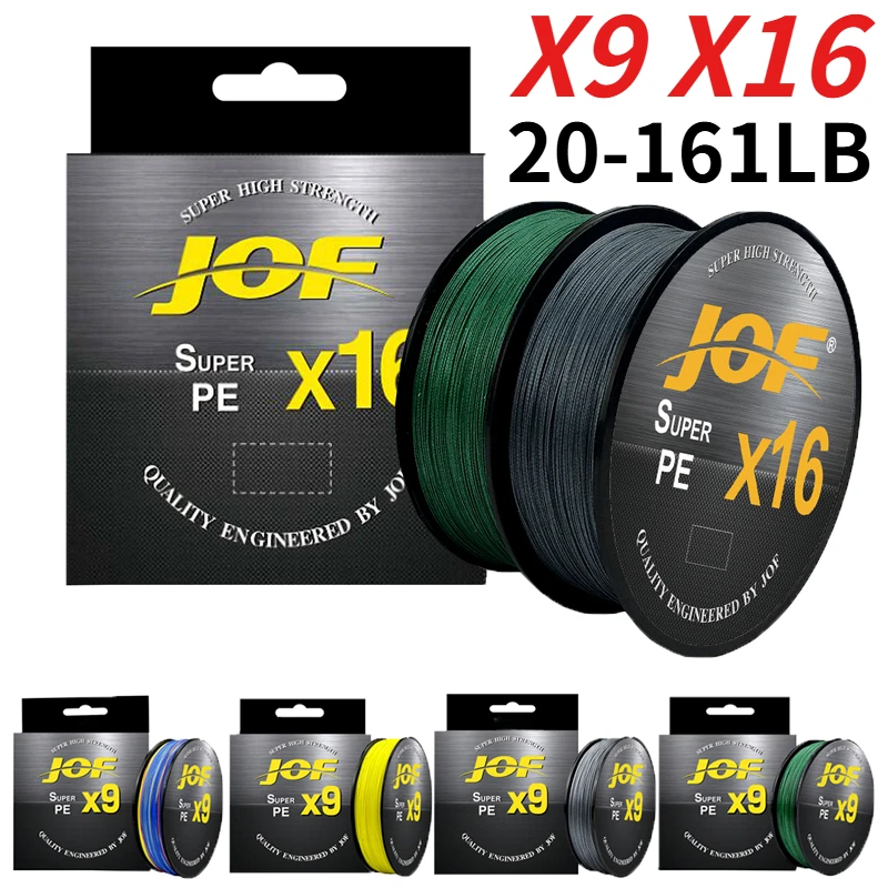 JOF 16/9 hebras 300M actualización Hollowcore multifilamento PE trenzado hilo de pescar súper fuerte 20-161LB 0,14mm-0,7mm para todas las aguas