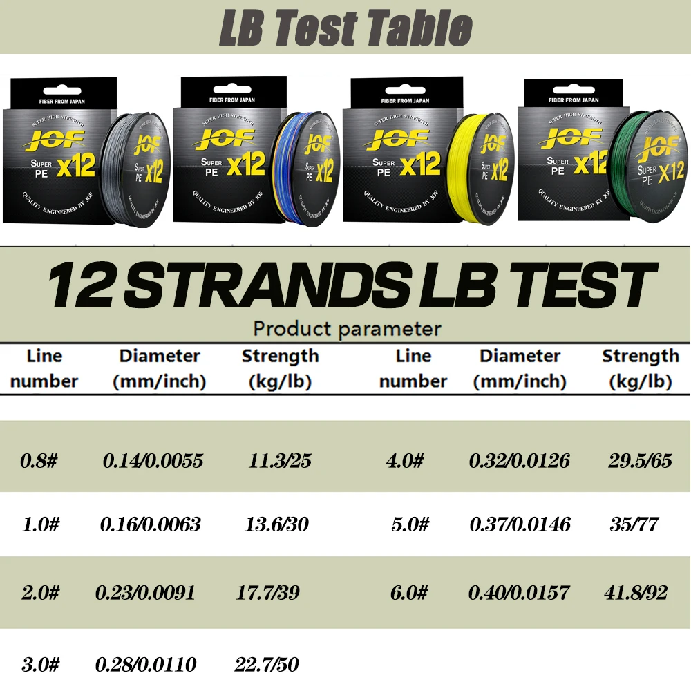 JOF 500m 12 hebras súper fuerte 12x resistente a la abrasión hilo de pescar de PE trenzado multifilamento pesca de carpa cuerda de alambre Pesca