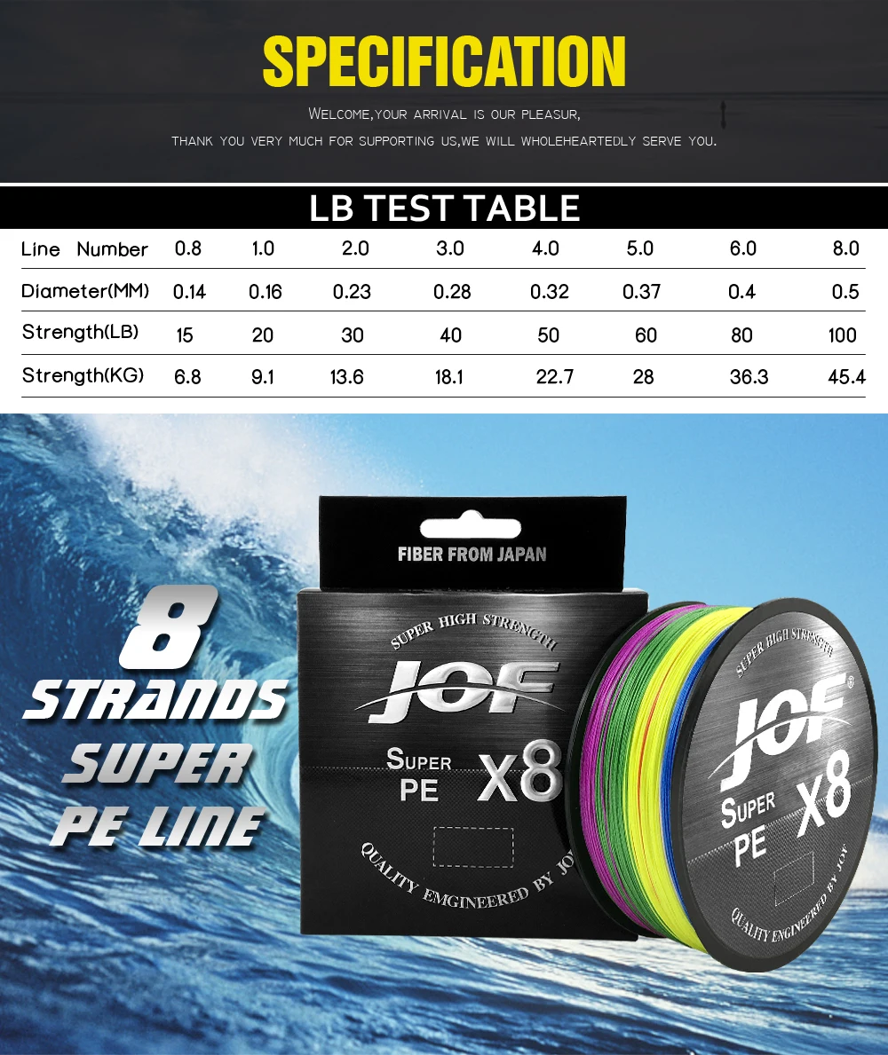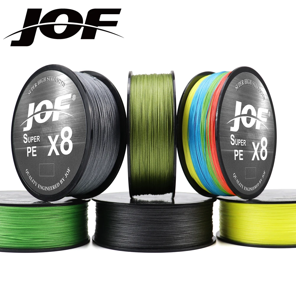 JOF 500M 300M 150M/ 546YDS 8 líneas de pesca trenzadas 8 teje alambre suave PE multifilamento línea para pesca en el mar 15-100LB