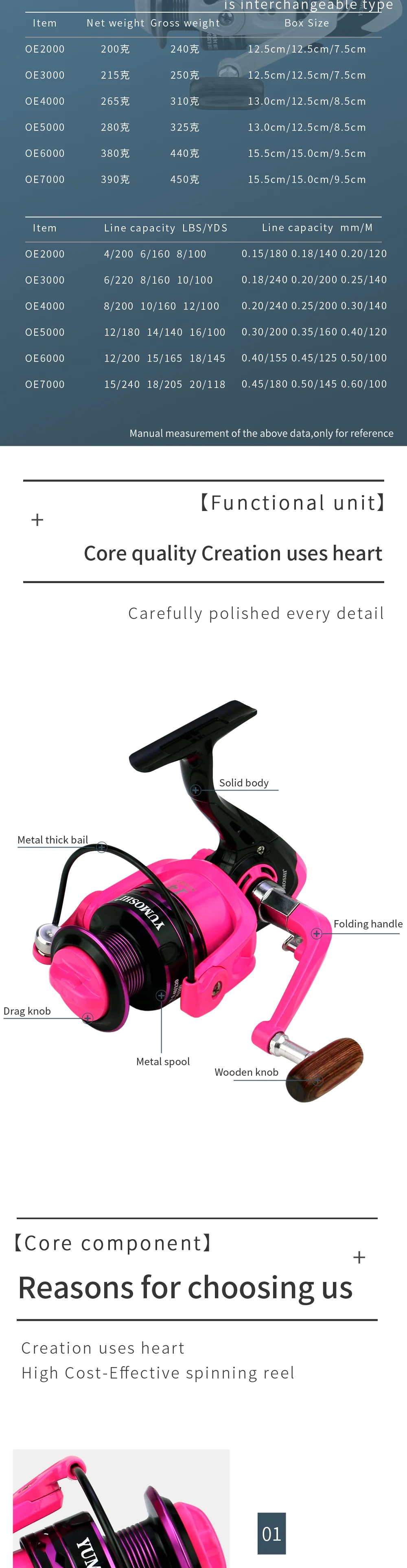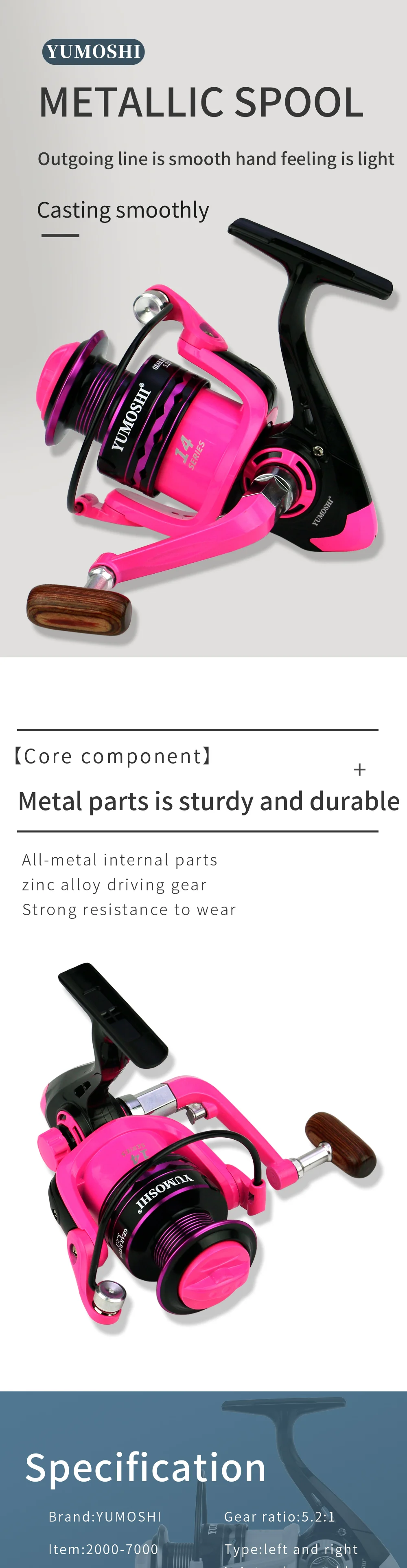 JOF-carrete de pesca giratorio de alta velocidad, accesorios de pesca de carpa, herramientas de agua dulce y salada, serie Rosa 2000-7000, 5,2: 1