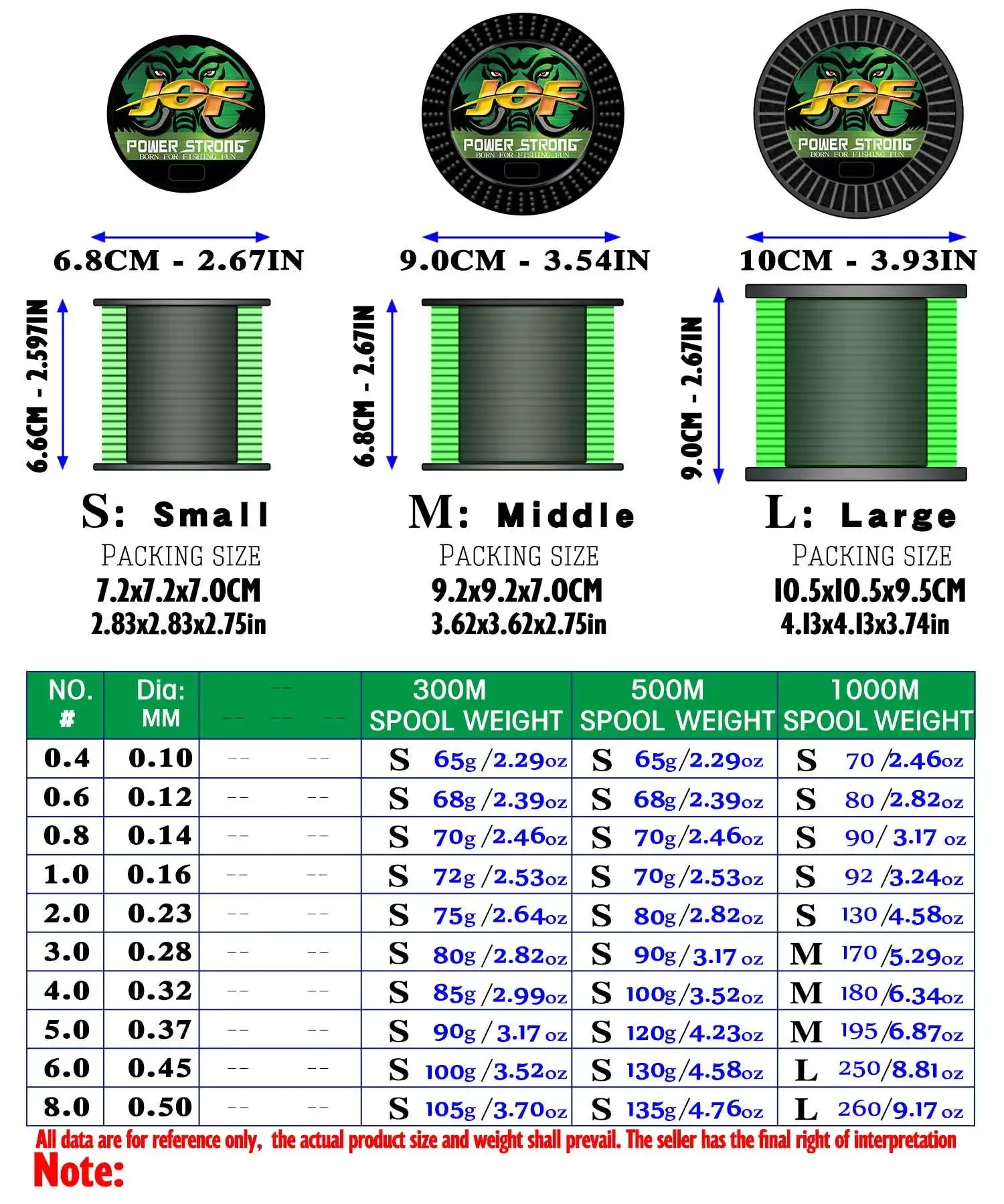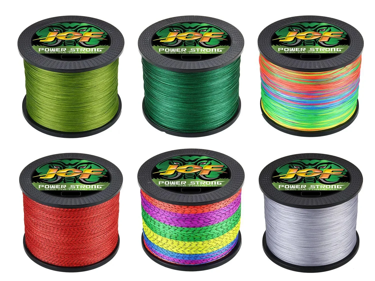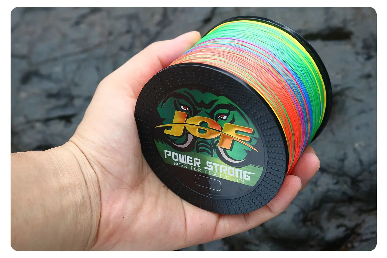 Línea de pesca trenzada JOF 8 hebras 100M 300M 500M PE multifilamento alambre fuerte Japón cordón para accesorios de carpa