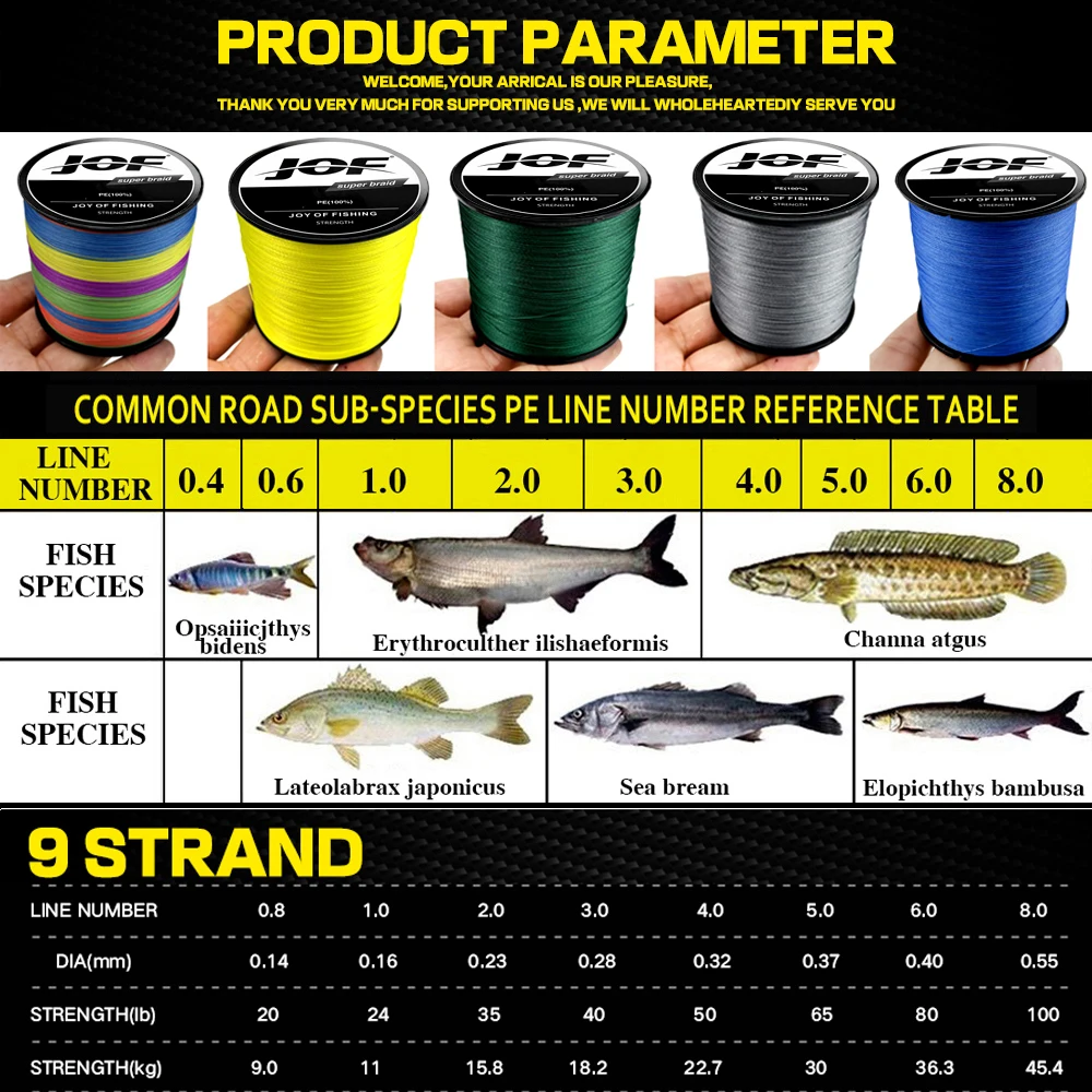 2: 9 hilos de PE, construcción trenzada única, hecha de fibras de PE de resistencia ultraalta.