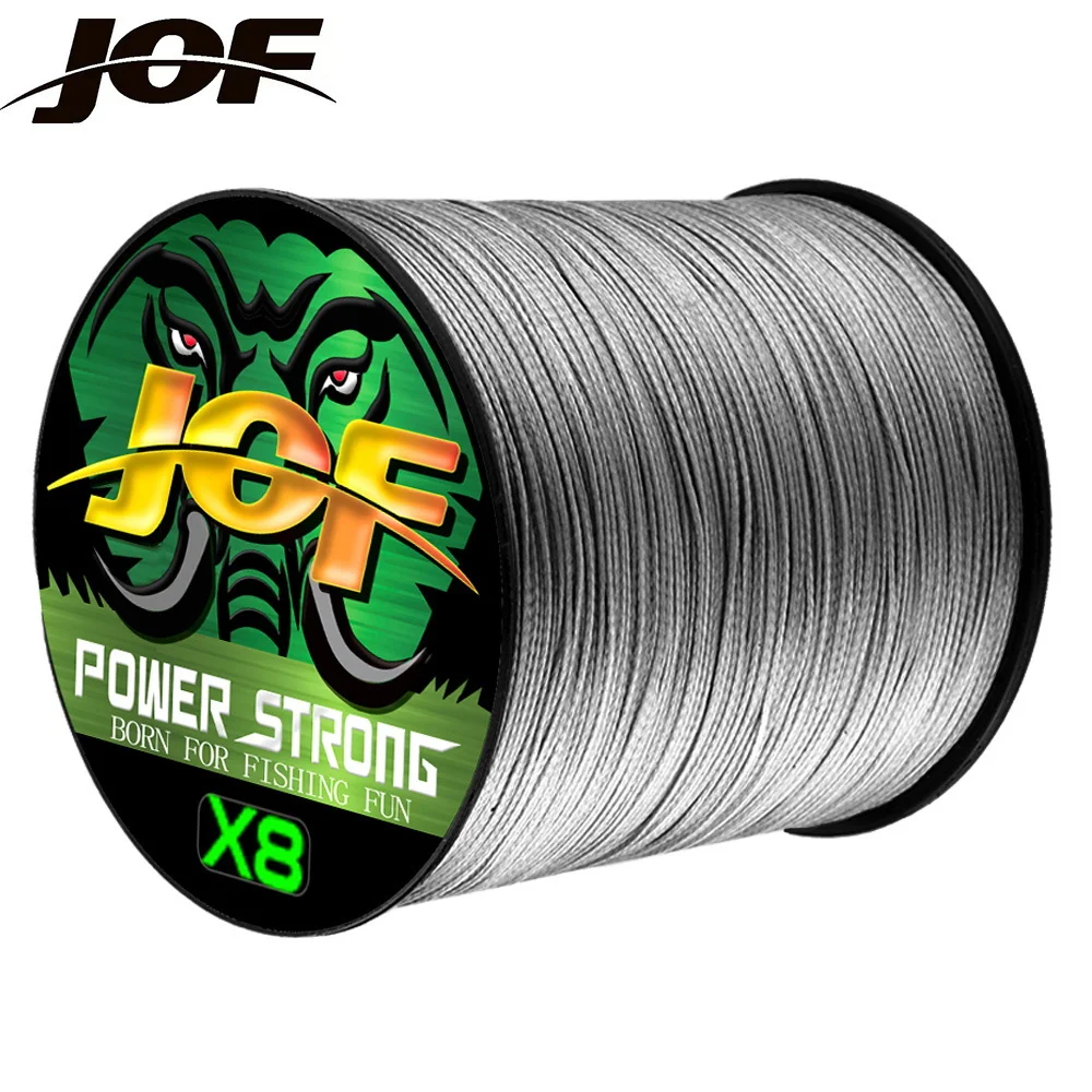 Línea de pesca trenzada JOF, alambre de mosca súper fuerte, 100% PE, multifilamento, 8 hebras, 100M, 300M, 500M, 1000M, aparejos de hilo tejido de carpa