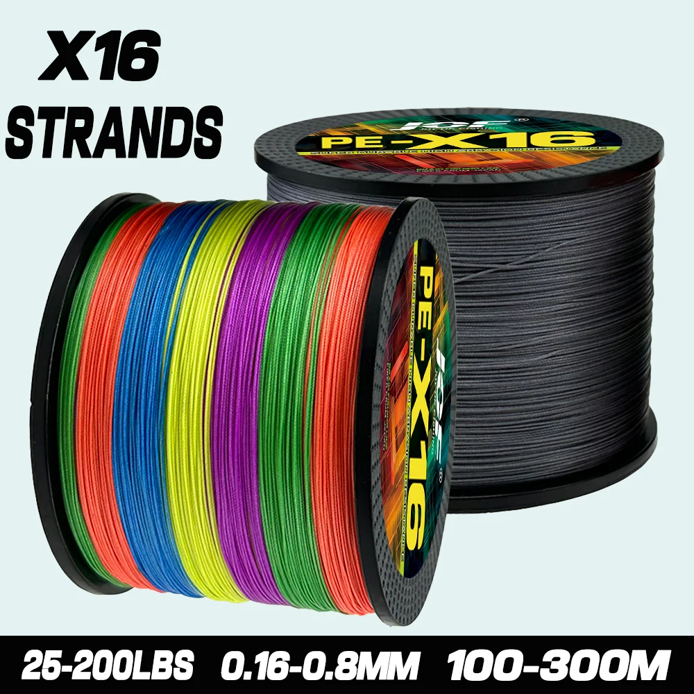 JOF Japón 16X línea de pesca trenzada 300/100M 16 hebras resistente al desgaste 11,3-91KGS LÍNEA DE PE multifilamento para alambre de pesca de carpa