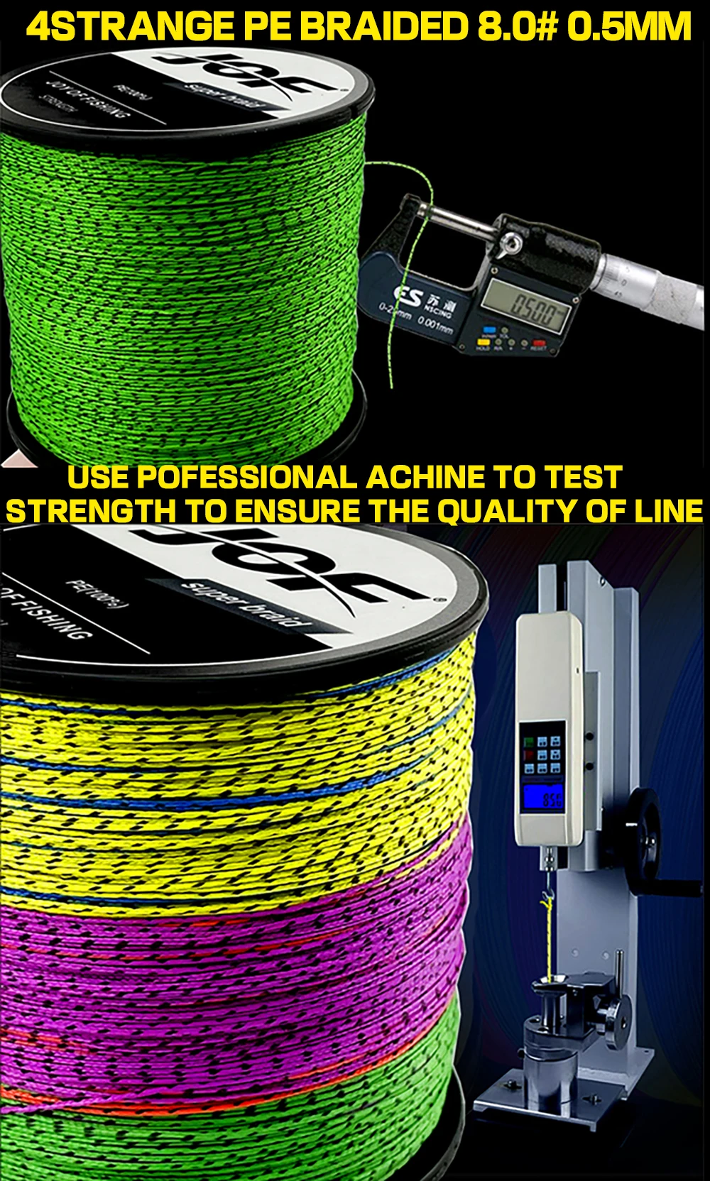 2: Línea de PE X4 Strands, construcción única de trenza moteada, hecha de fibras de PE de resistencia ultraalta.