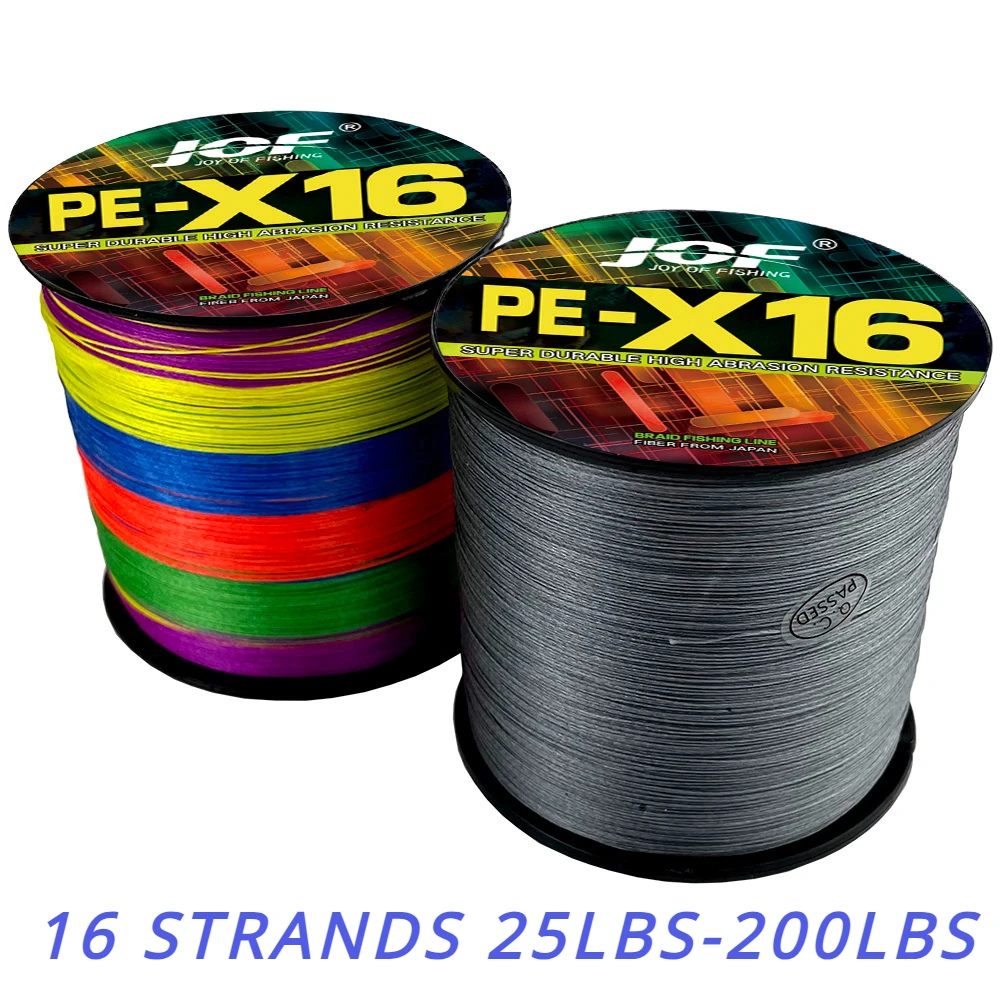 JOF Super Power X16 PE Line 100m 300m Anti-bite Wear-resistace Smooth Cast Braided Fishing Line 25lb-200lb for Sea FishingThe JOF NEW 16 Strands Braided Fishing Line is the perfect choice for avid anglers. This high-strength, anti-bite, and wear-resistant fishing line is designed using the latest weaving technology to ensure maximum durability and toughness. With a higher density and stronger pulling force, this line provides better performance than traditional 4, 8, 9, and 12 strands lines.