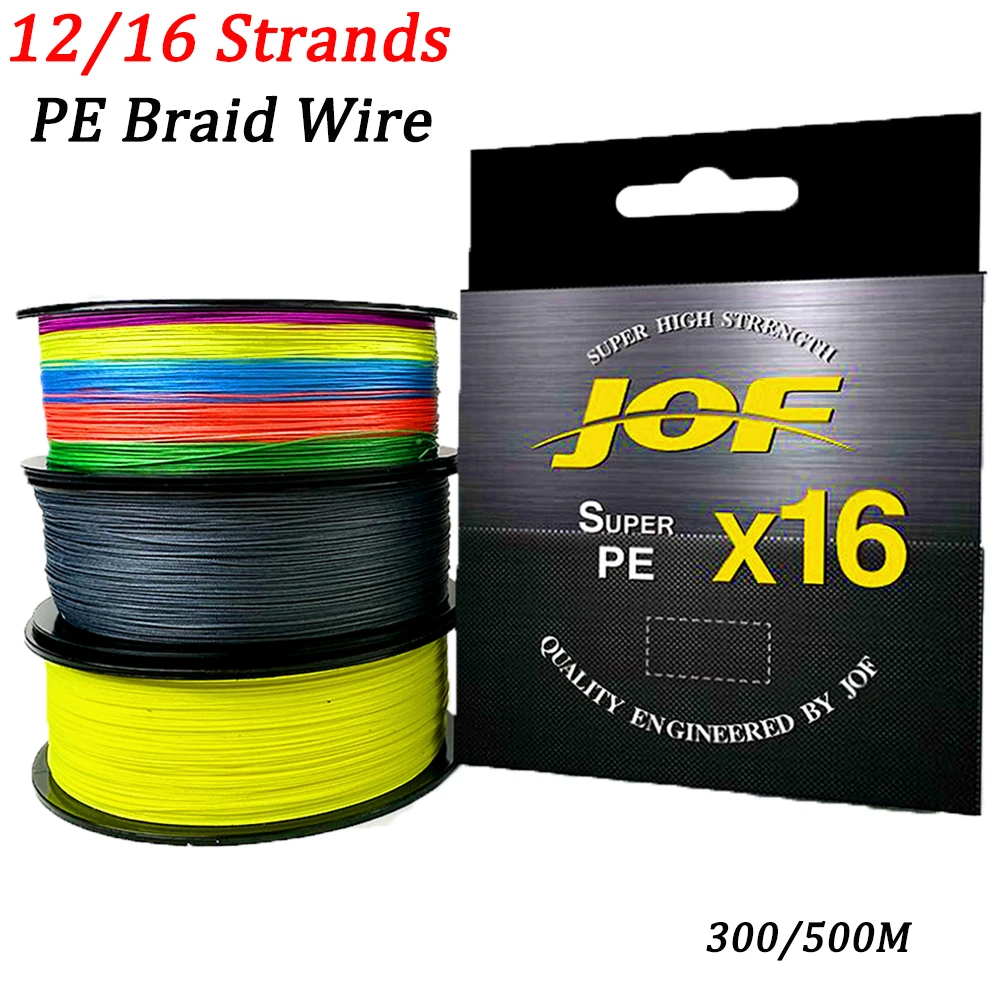 JOF multifilamento 12/16 hebras hilo de pescar trenzado PE alambre 500M 300M Jigging mar agua salada Pesca de agua dulce resistente a la abrasión
