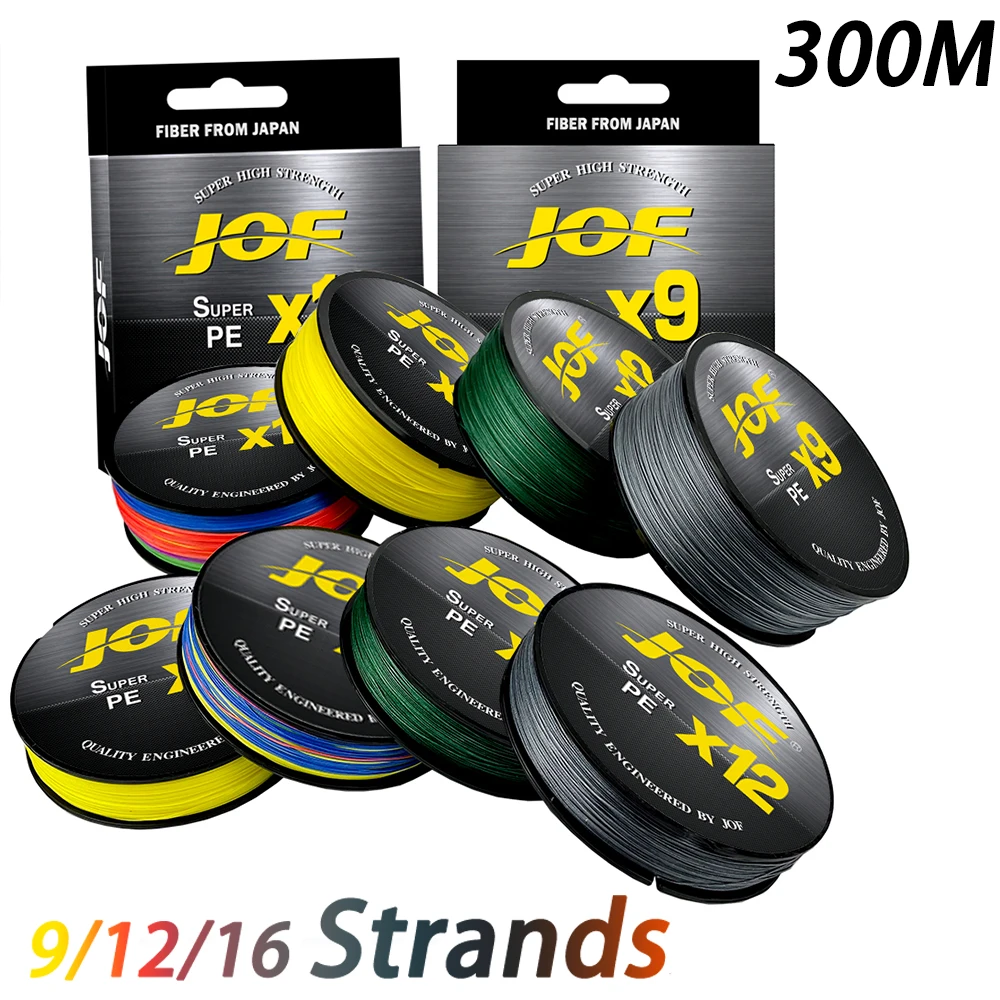 JOF nuevo X9/X12/X16 hilo de pescar de PE trenzado 300M 9/12/16 hebras 9-73kg alambre de pesca multifilamento herramienta de sedal de pesca de carpa 20-161lb