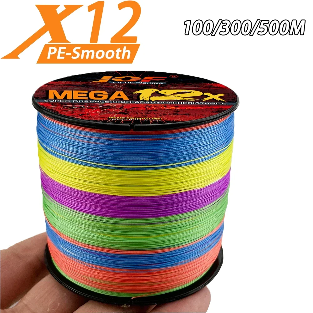 Línea de pesca JOF de 12 hebras, 100M, 300M, 500M X12, alambre fuerte trenzado de PE, multifilamento de longitud completa, alambre de agua salada duradero de 25-120LB