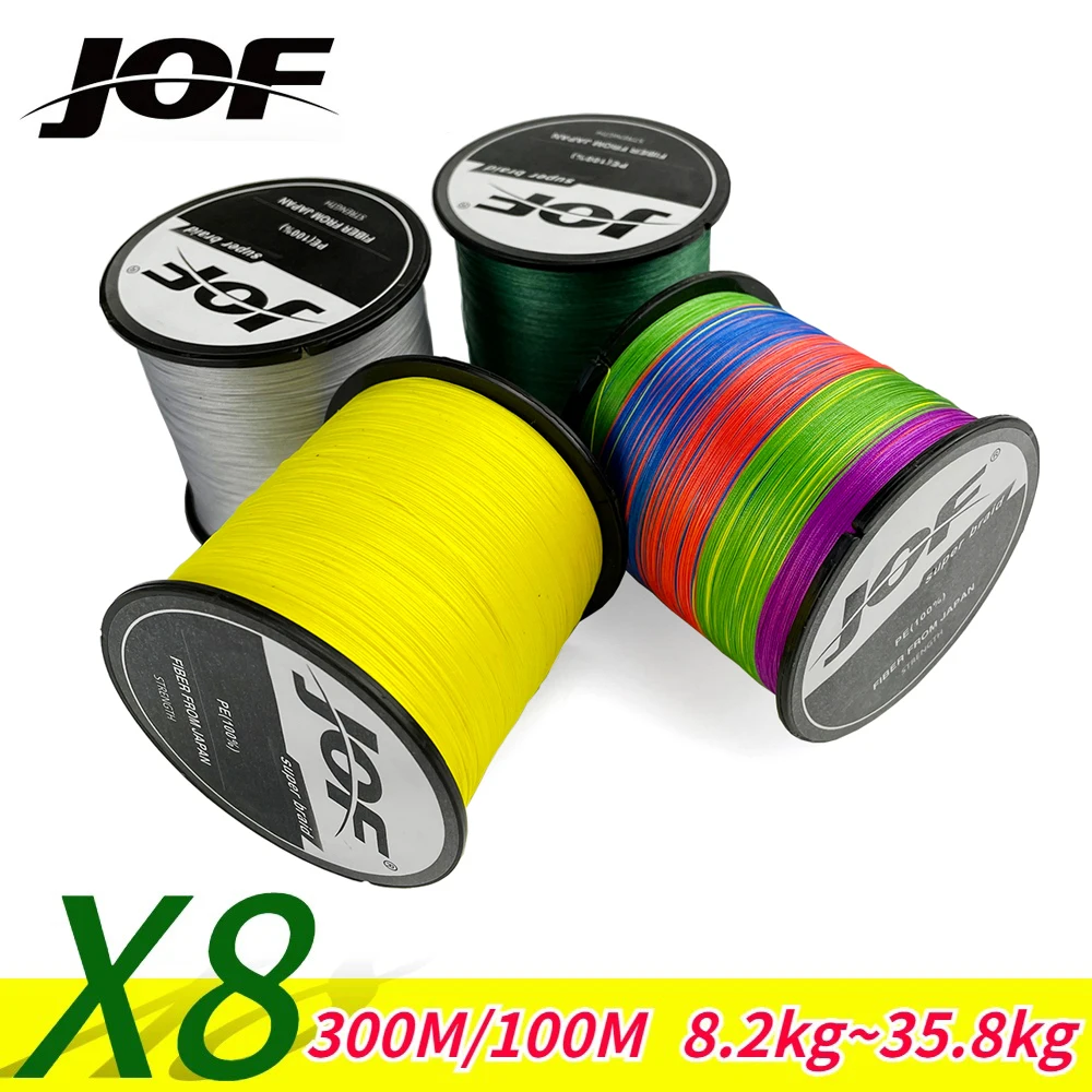 JOF 8 hebras PE línea de pesca 100M 300M multifilamento línea de pesca accesorios de pesca cordón trenzado para pesca de mar carpa 18-78LB
