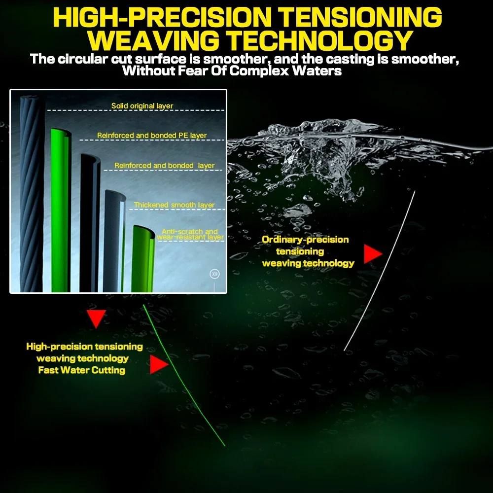 2: 9 hilos de PE, construcción trenzada única, hecha de fibras de PE de resistencia ultraalta.